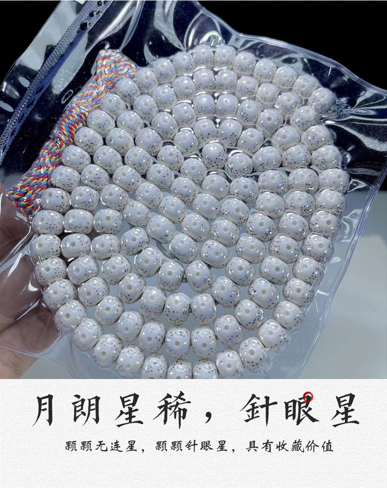 海南星月菩提円珠手串108個の大きな白い針の穴の星の高磁器の高い文は数珠のブレスレットを遊びます。