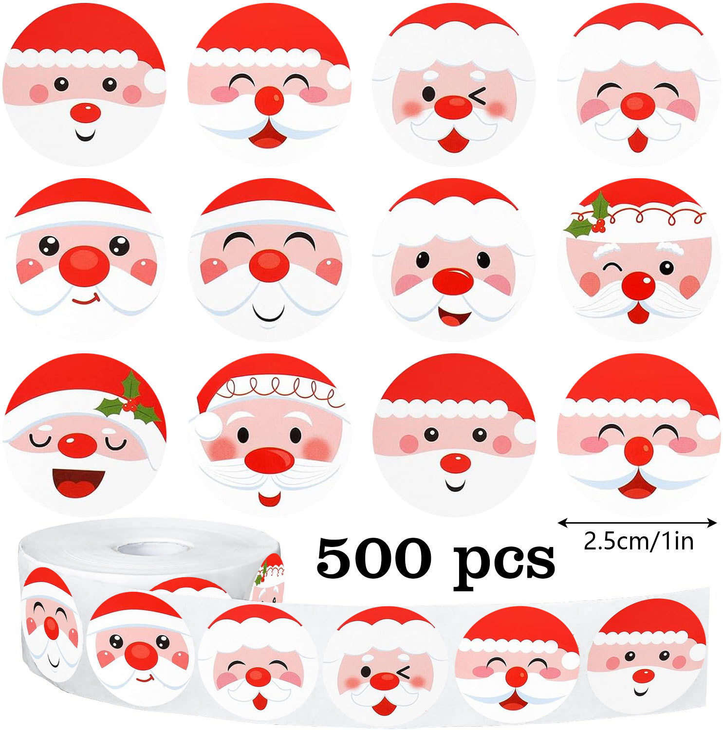 500张红色卡通圣诞老人头像贴纸 1英寸新年节庆派对DIY装饰贴画