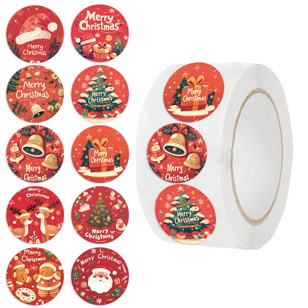 500枚のロールアップラウンドクリスマスステッカーDIY装飾ステッカー