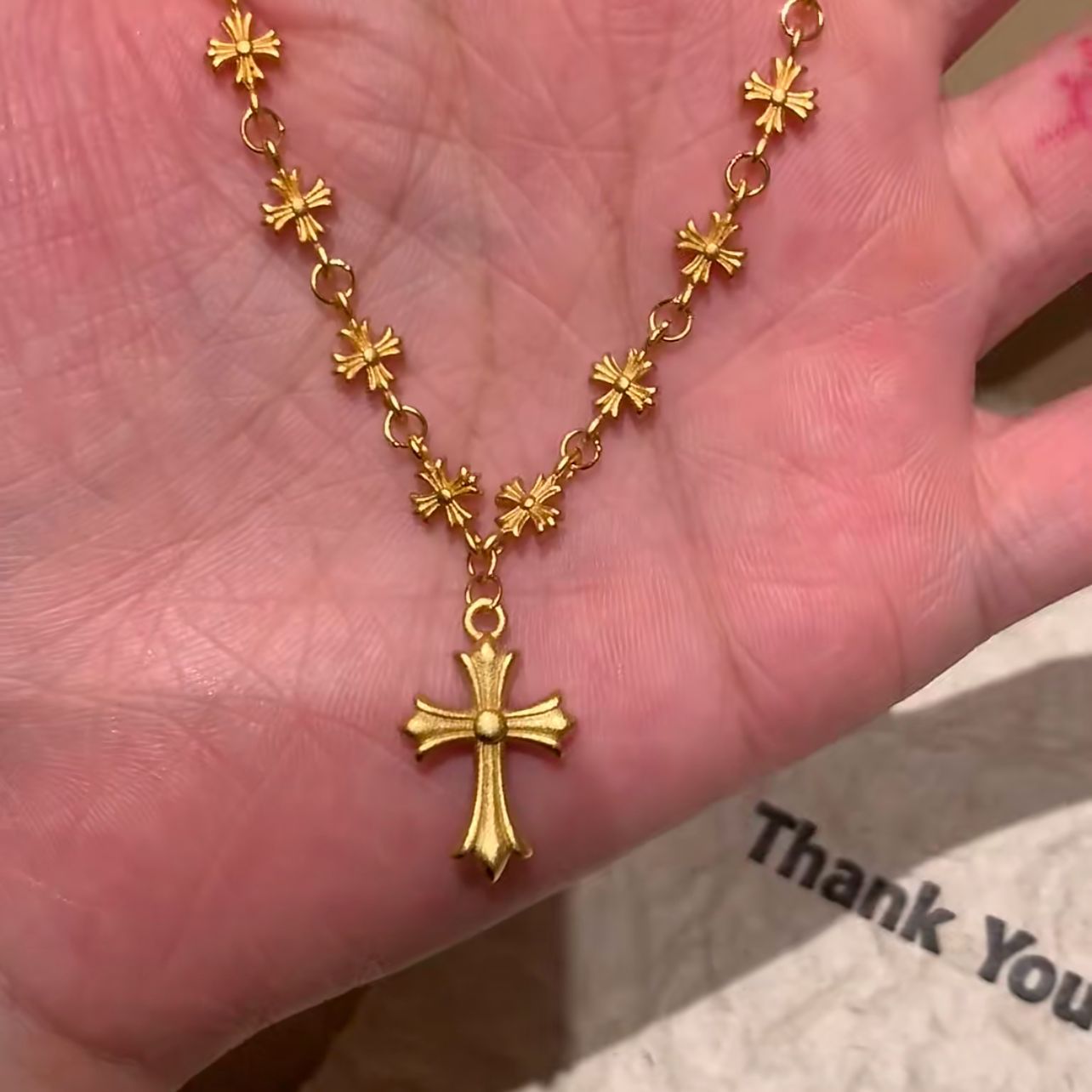 ch羅クロスダイヤモンドネックレス男性と女性の人気の鎖骨チェーンDouyin Xiaohongshuインターネット有名人同じペンダント
