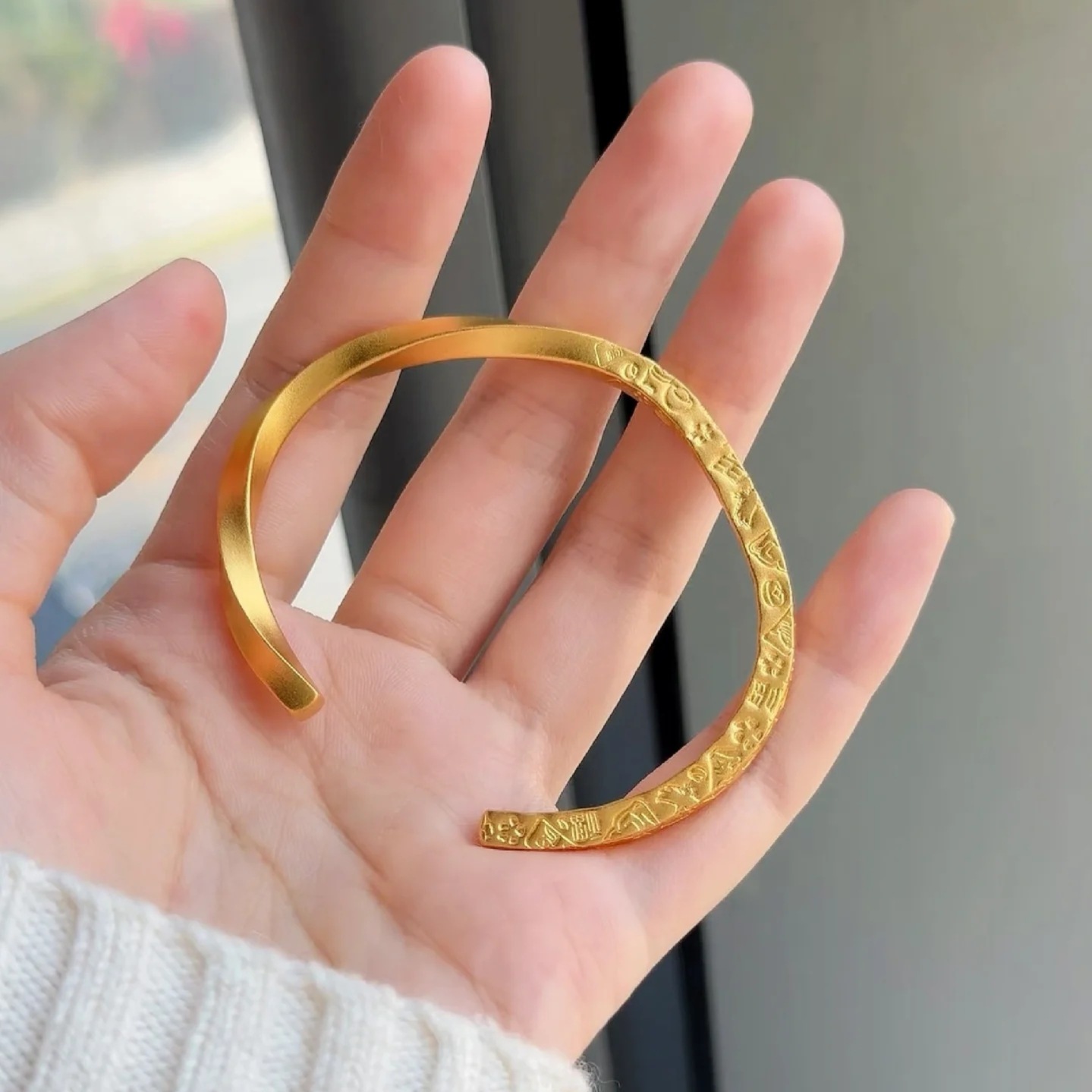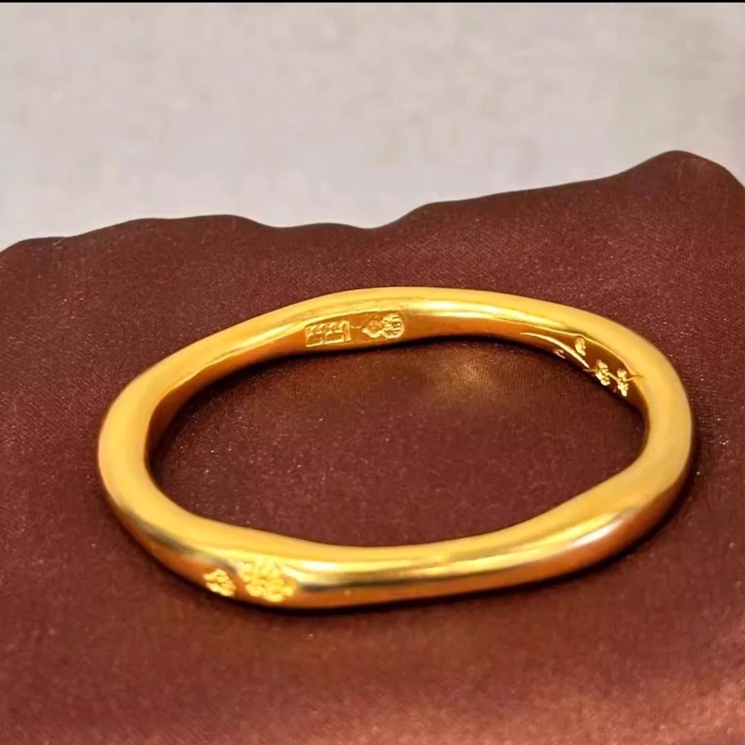 ゴールドストアと同じスタイルのサンドゴールド999ナマズバックプレーンリング、ガールフレンド用の古代の継承つや消しリング
