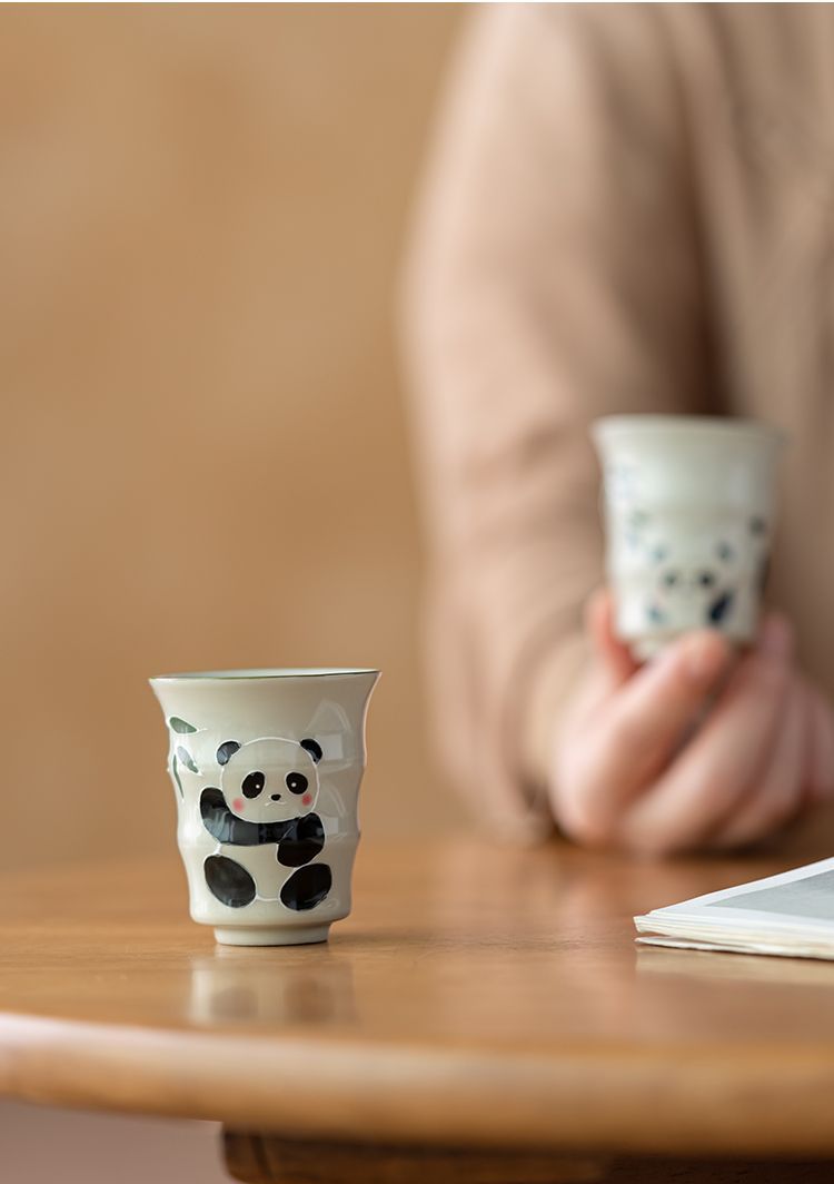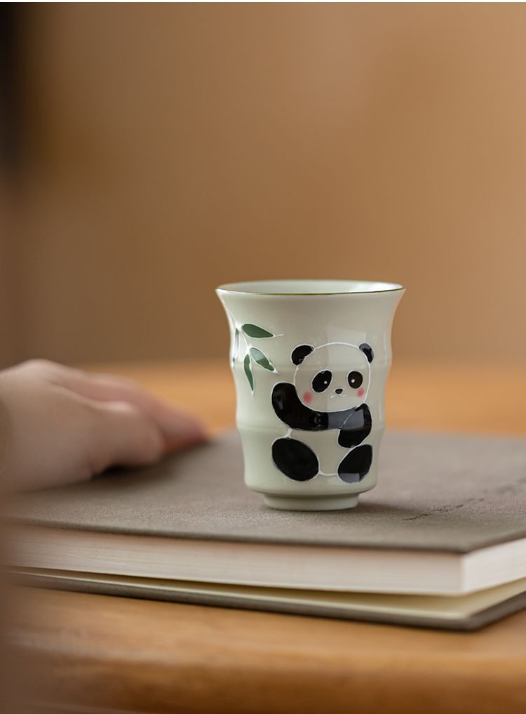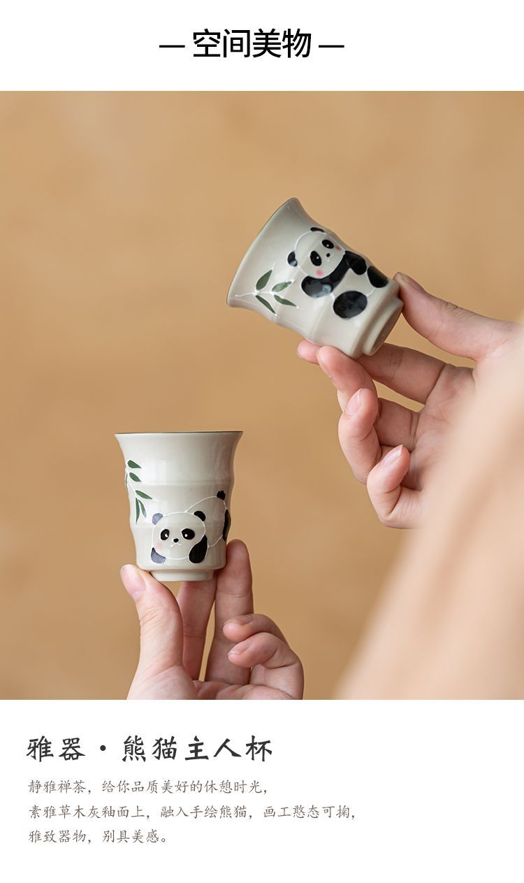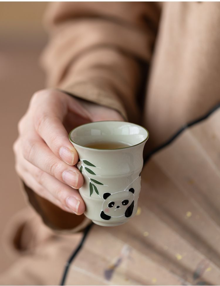 草の木の灰色の手描きのパンダの主人の杯の竹節の杯の単女の杯の工夫の杯の陶磁器の品茗杯の男の対の杯