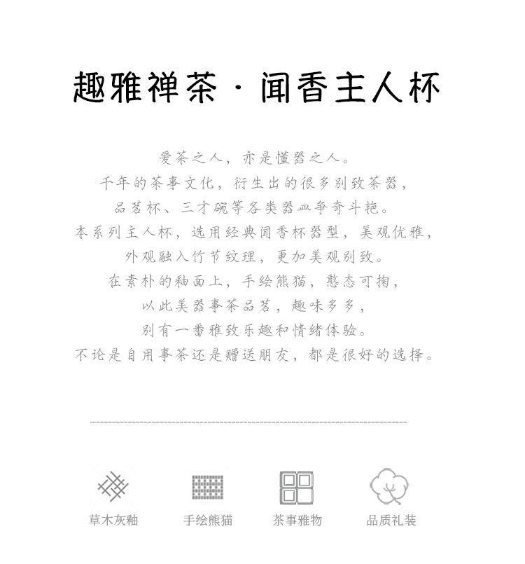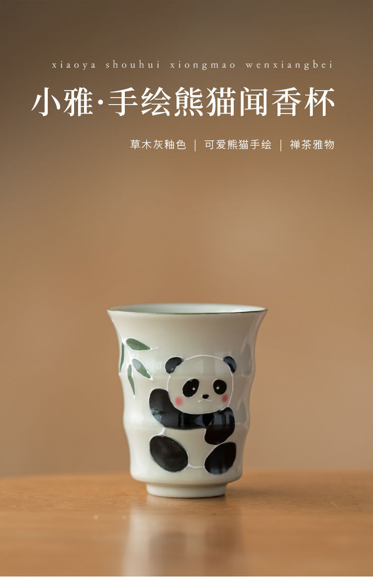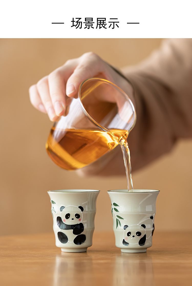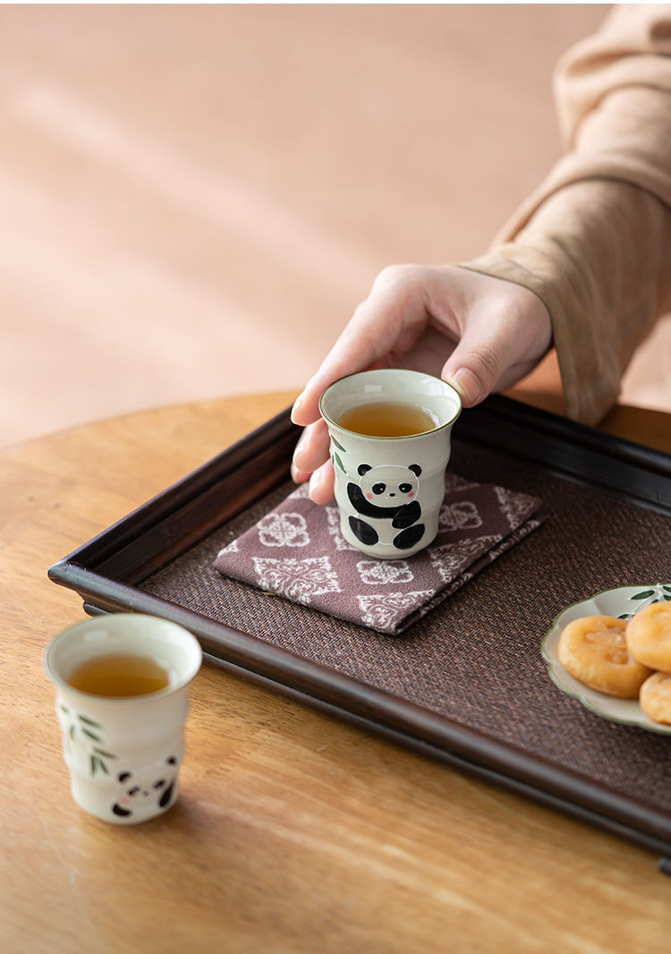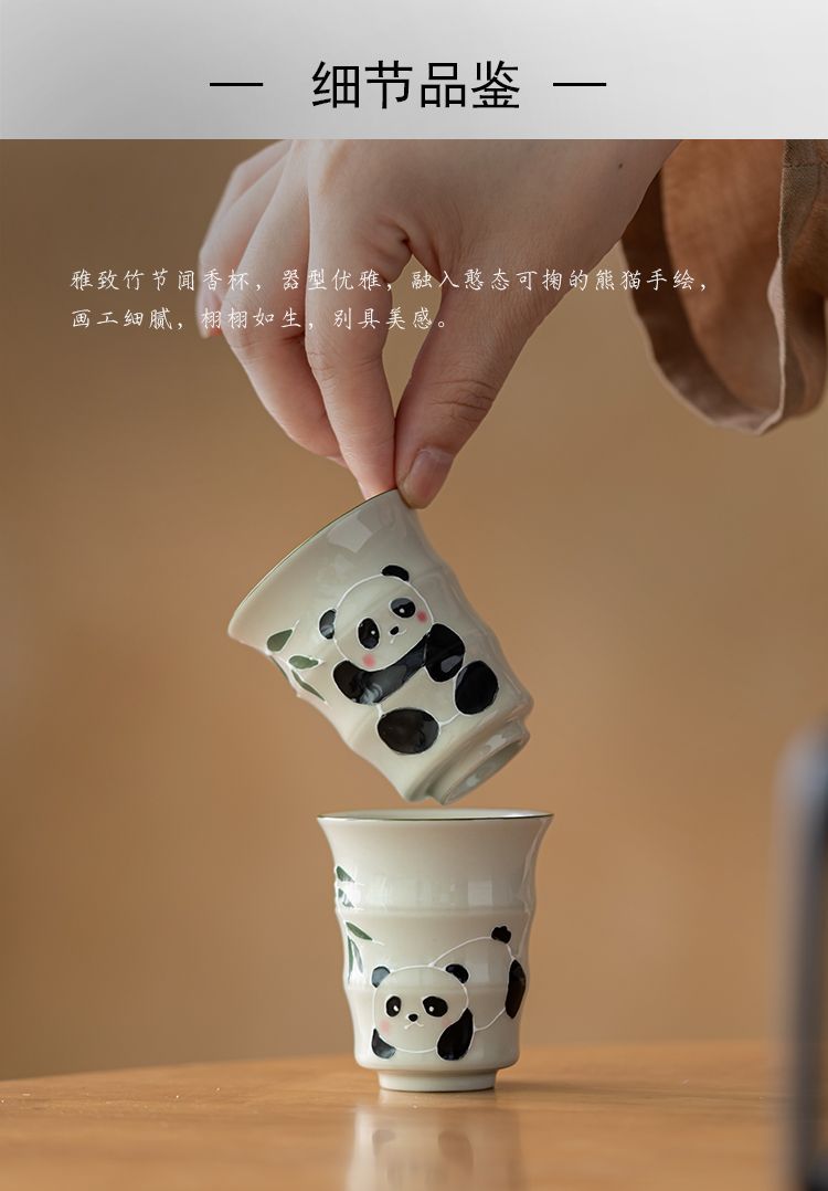 草の木の灰色の手描きのパンダの主人の杯の竹節の杯の単女の杯の工夫の杯の陶磁器の品茗杯の男の対の杯