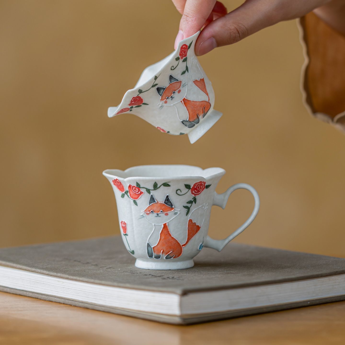 狐小玫品茗杯陶瓷釉下彩手绘主人杯家用茶室高颜值花茶杯礼装