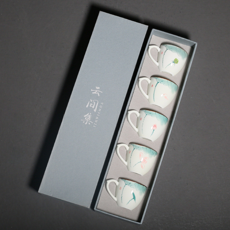青磁の手描きの蓮の花は主人の杯を持っています。