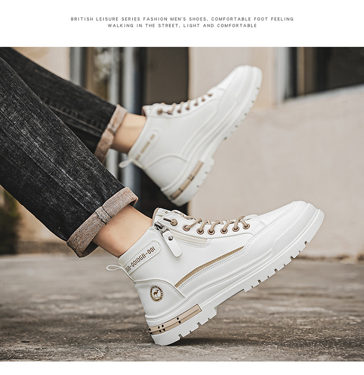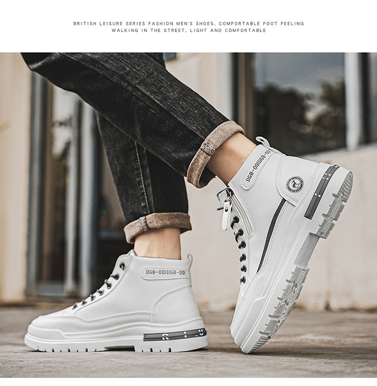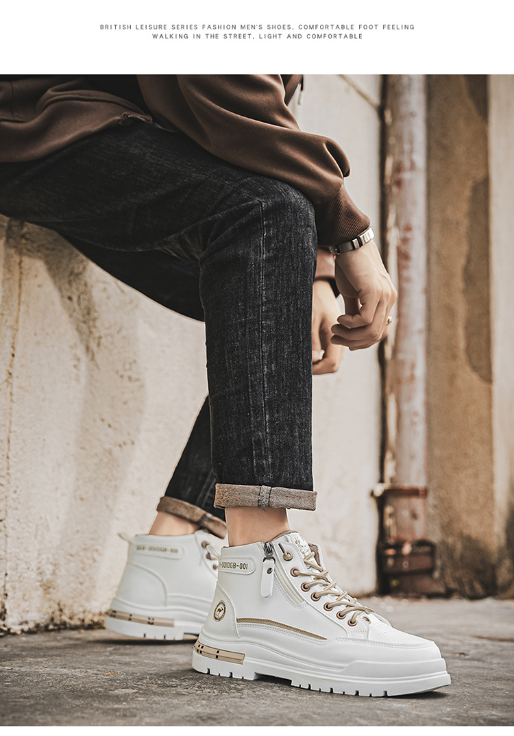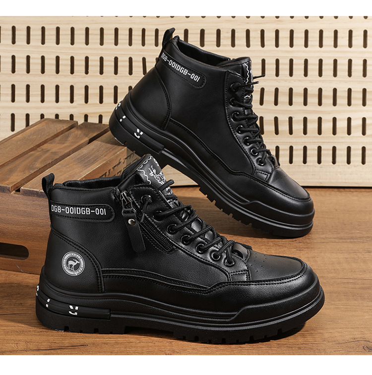 2025マーティンブーツ男秋冬ファッションカジュアル靴男性運動内に高くなった側ファスナー耐摩耗性男靴