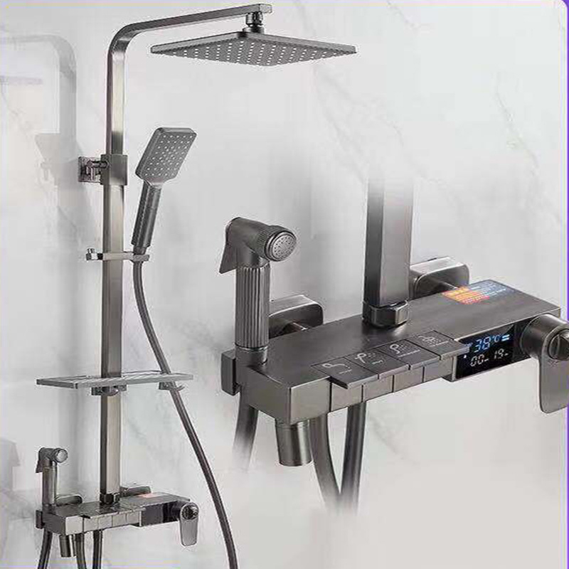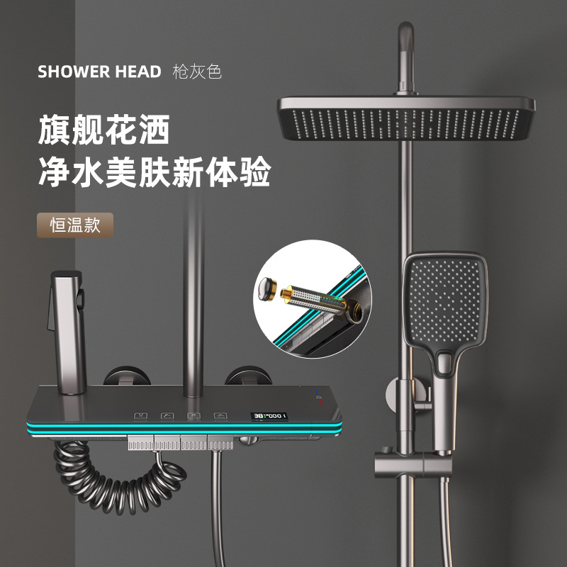 新型知能伸線銃灰色水メッキ恒温花散布セットピアノ鍵シャワー花散布デジタル表示恒温家庭用