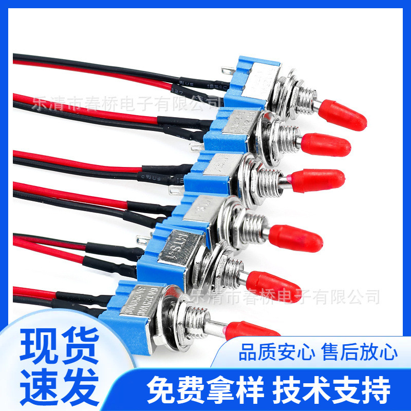 ミニボタンスイッチMTS-102 3脚2速溶接線付き絶縁赤帽子線長30cm