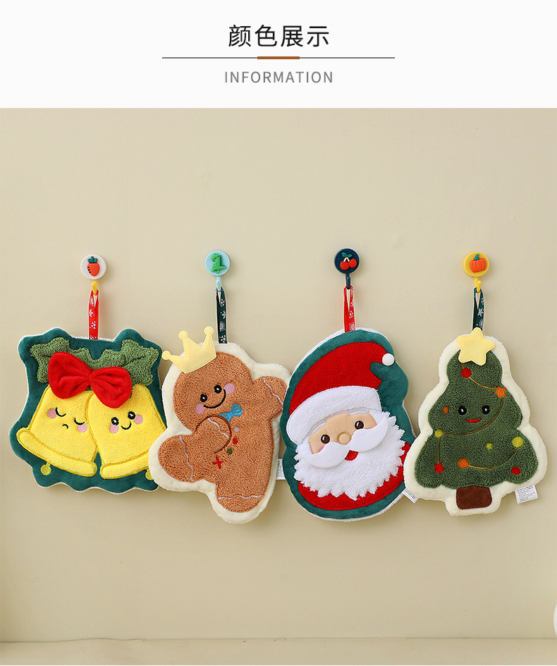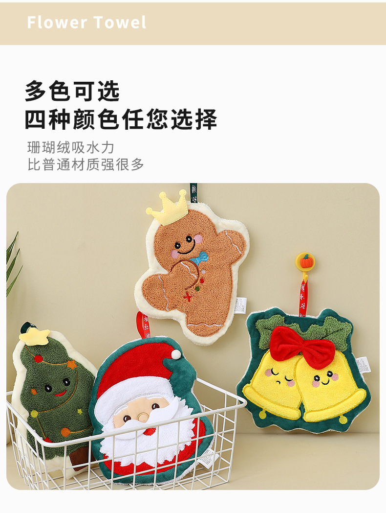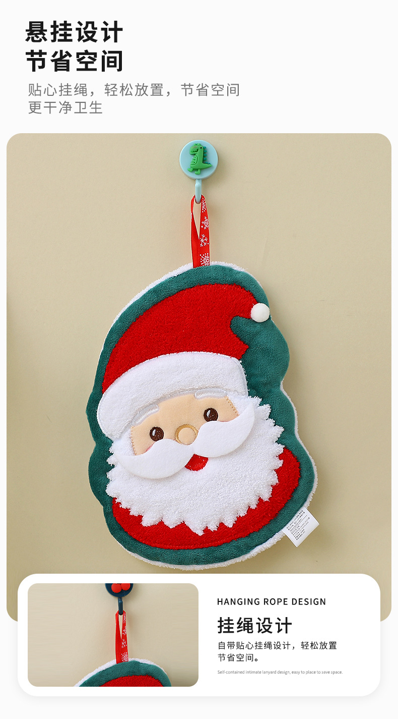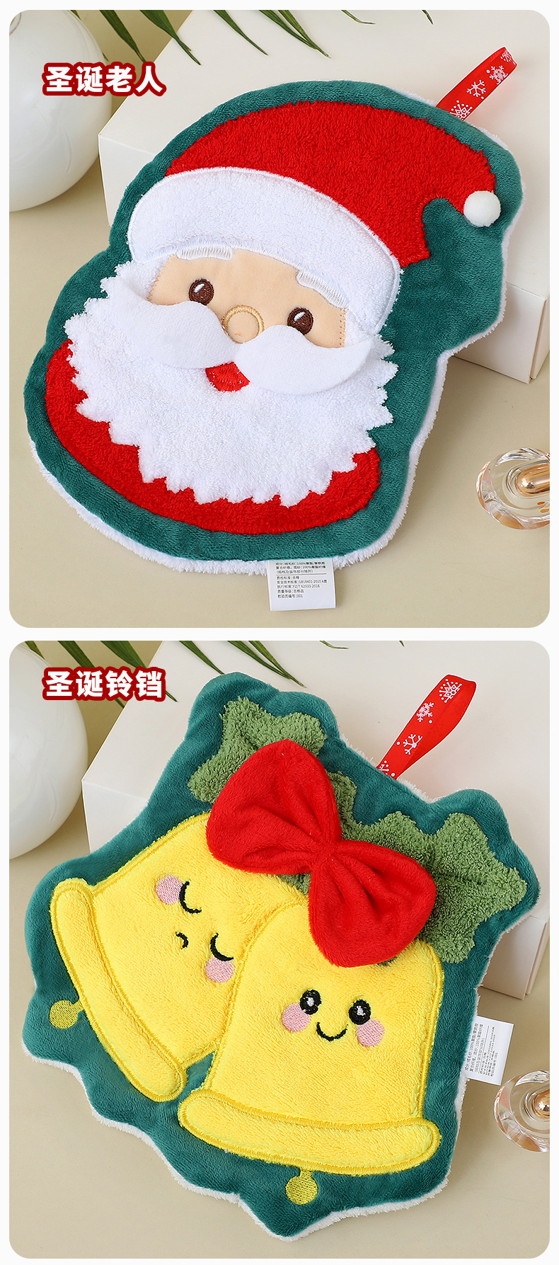 圣诞擦手巾源头工厂珊瑚绒厨房卫生间可挂式吸水易干擦手帕跨境批