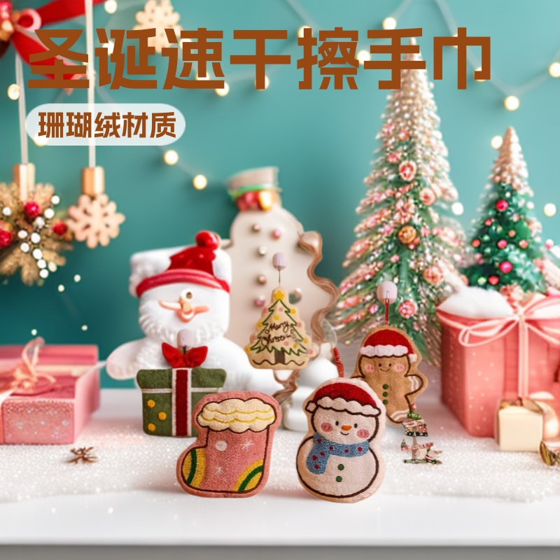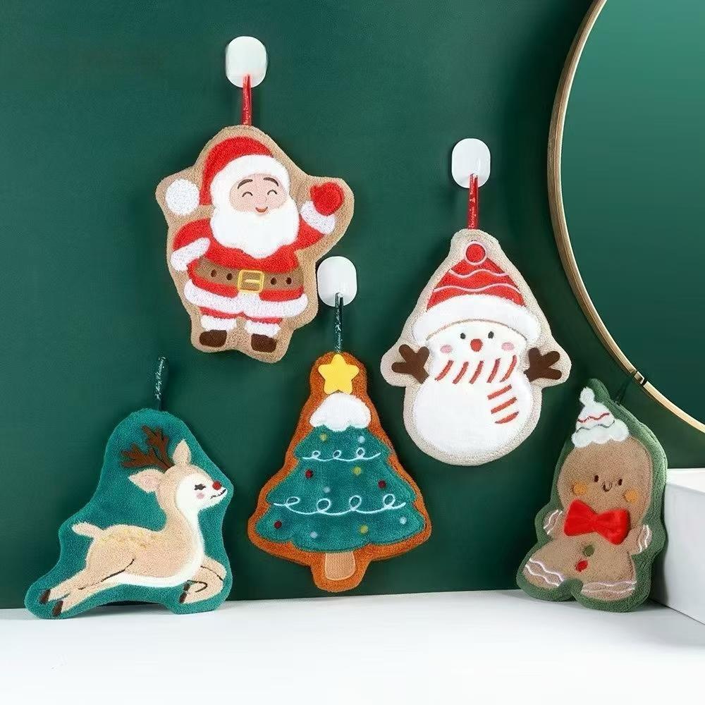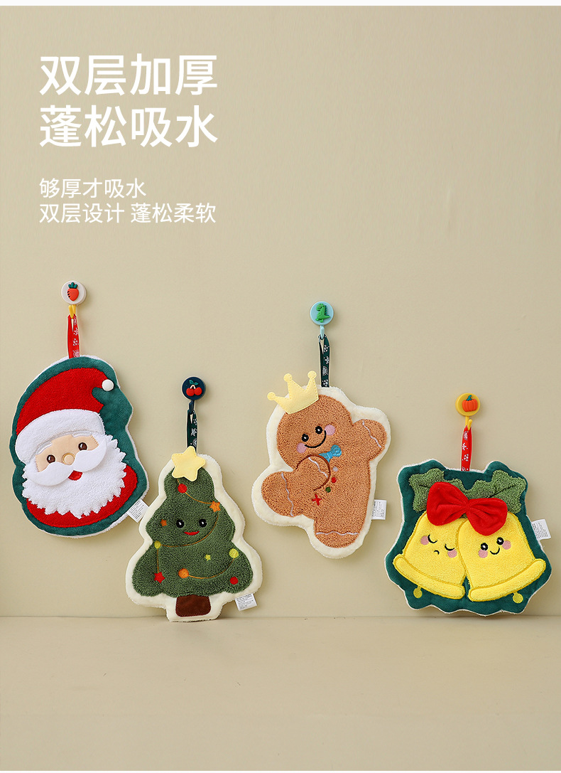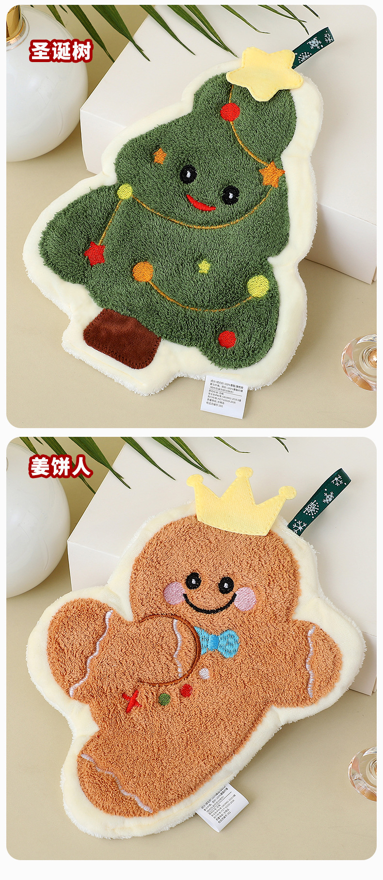 圣诞擦手巾源头工厂珊瑚绒厨房卫生间可挂式吸水易干擦手帕跨境批