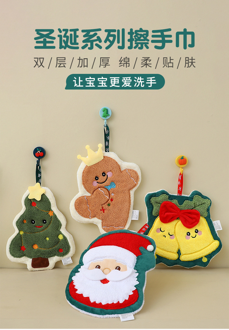 【圣诞挂巾集合】挂式可爱吸水加厚儿童擦手毛巾圣诞节新年礼物