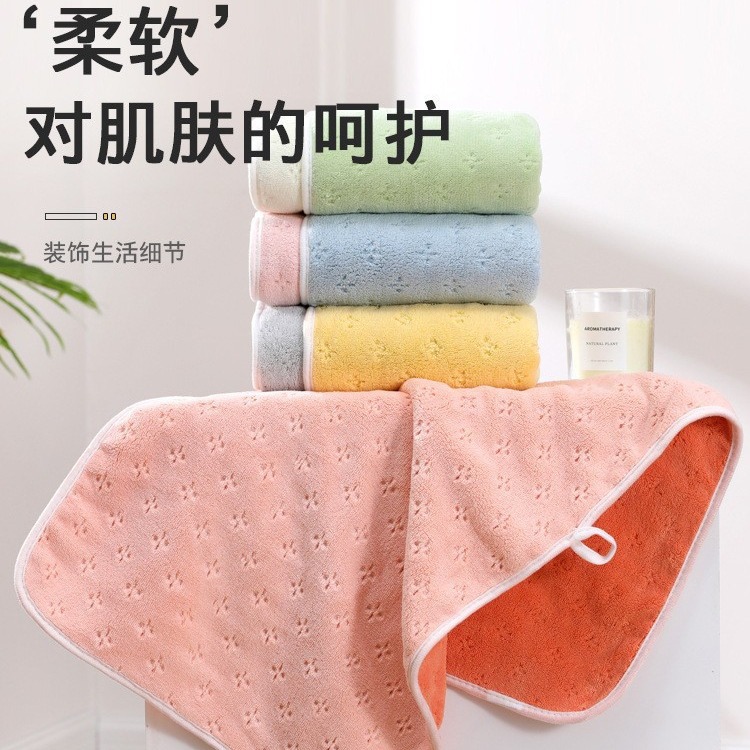 コーラルベルベット大判バスタオル、両面厚手縁取り、ホテル・家庭用、吊り下げ可能、柔らかく吸水性抜群、ロゴ印刷可能、ホテル仕様