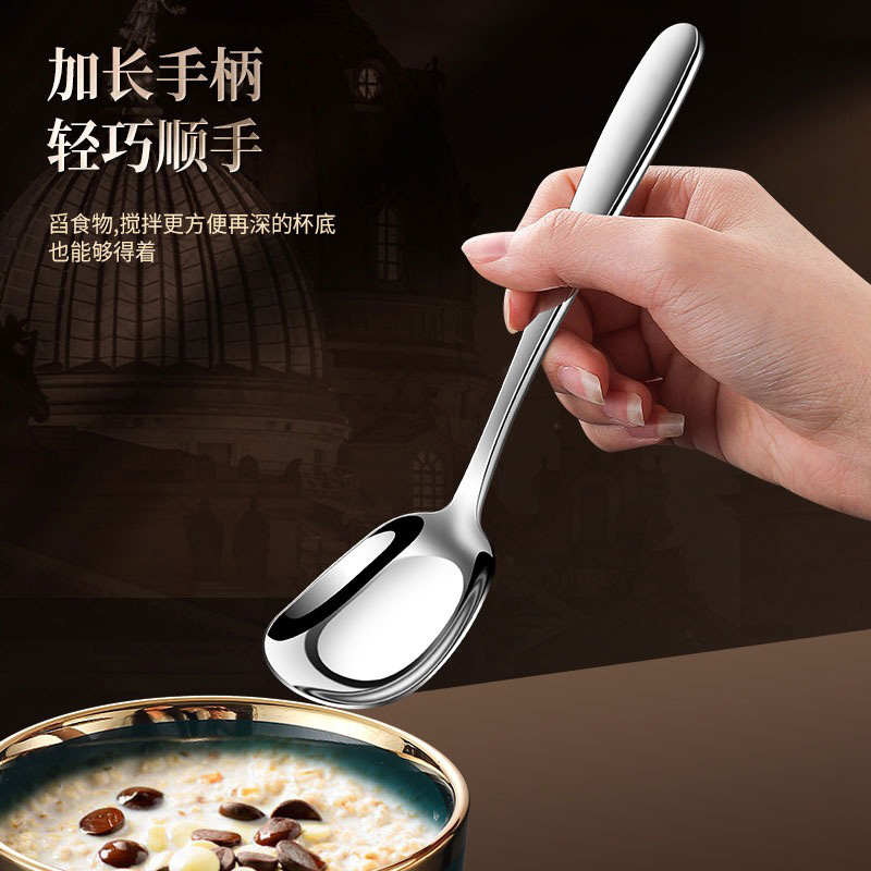 316L不锈钢平底勺深方头勺子长柄吃饭汤匙家用调羹喝汤勺餐勺