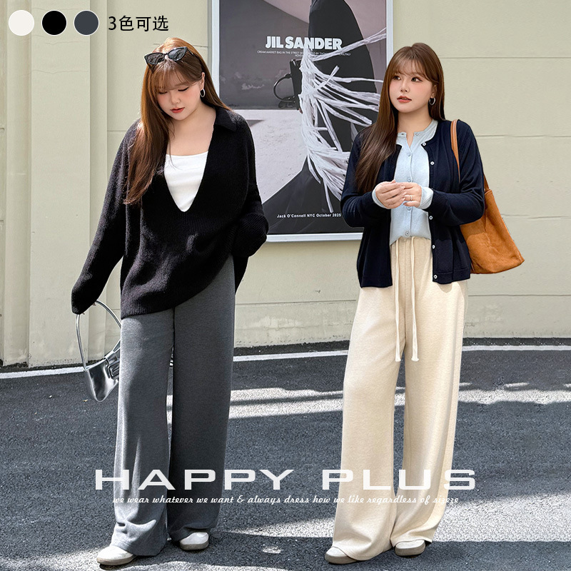 休闲三件套宽松软糯针织休闲阔腿裤润其9420大码极简学院休闲