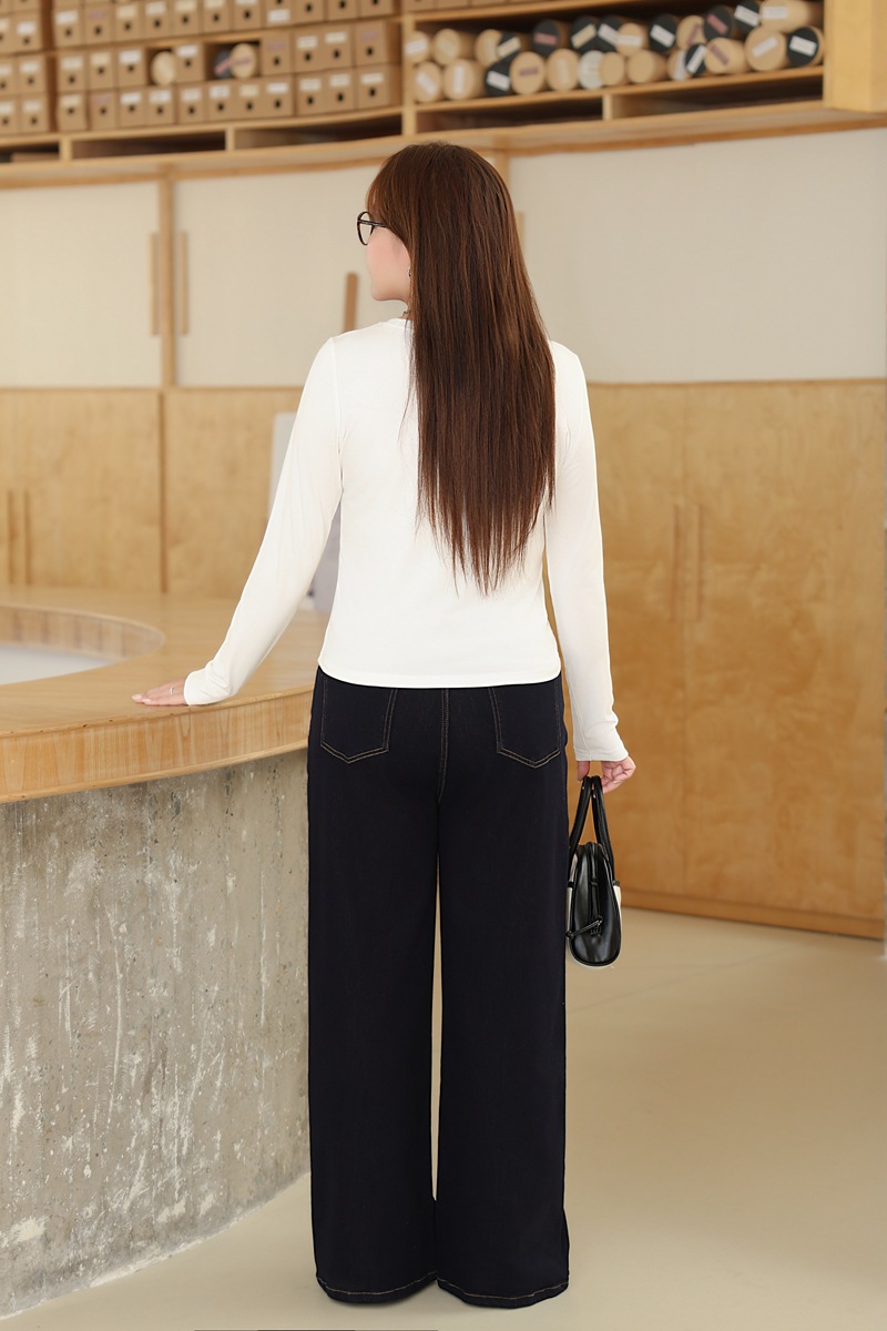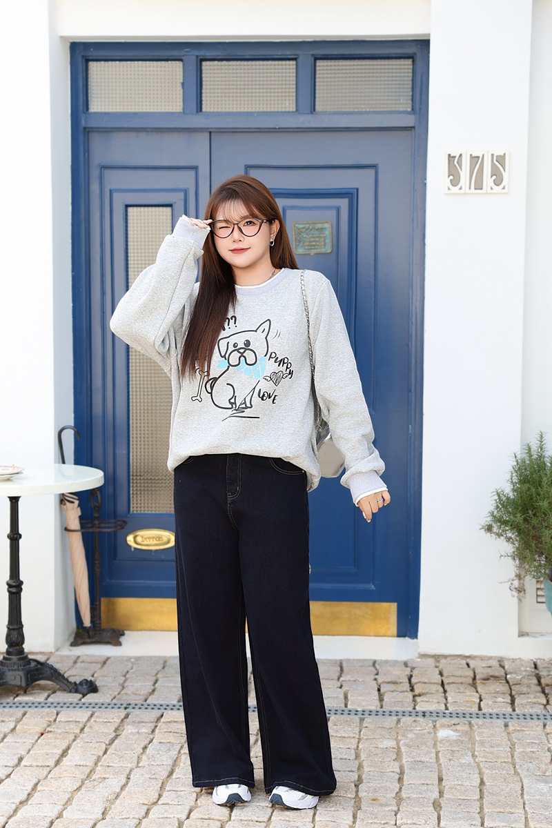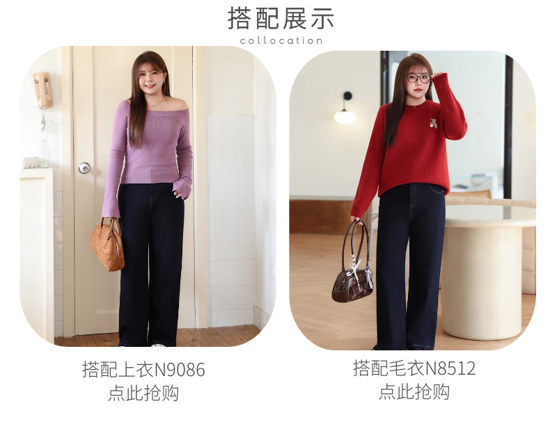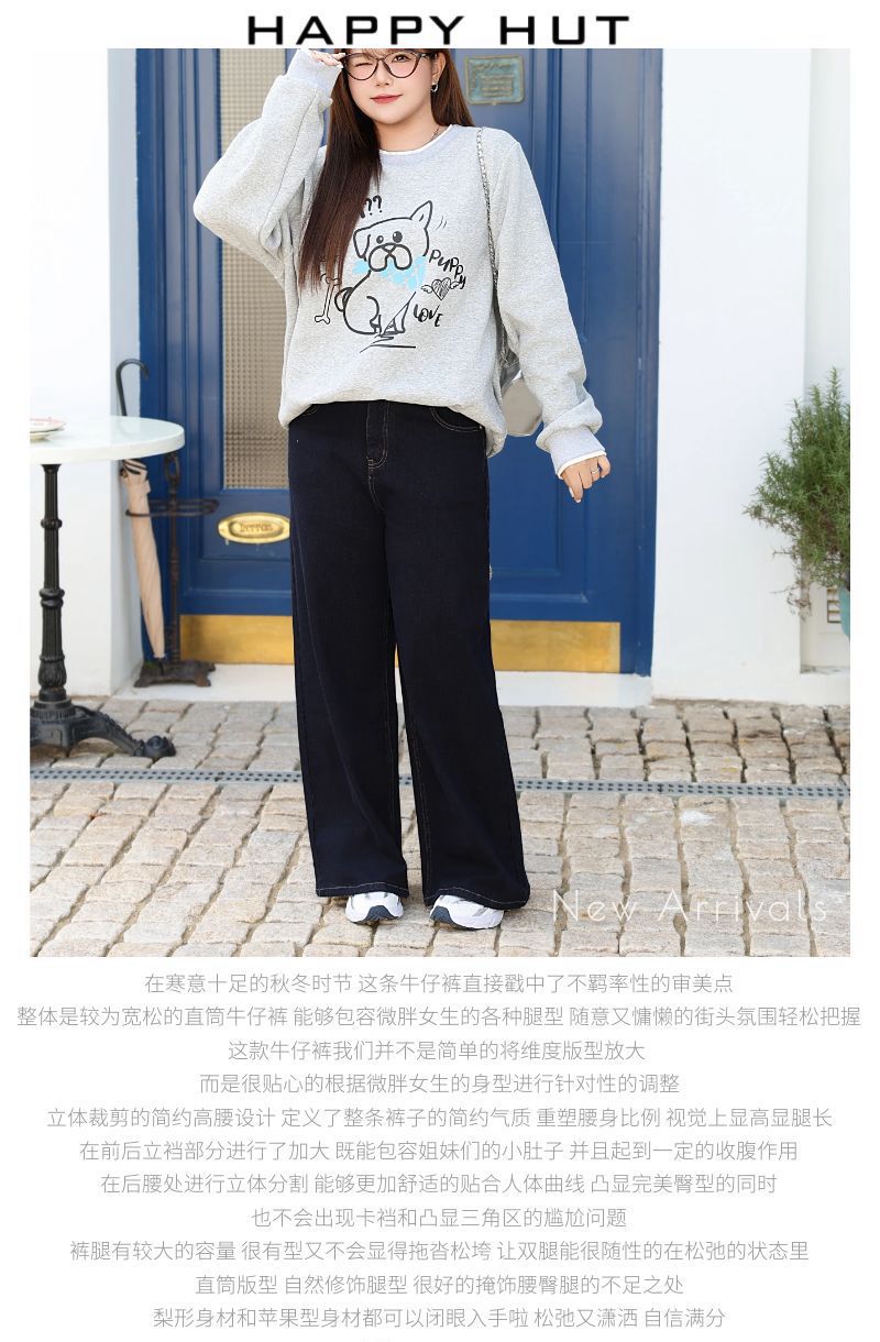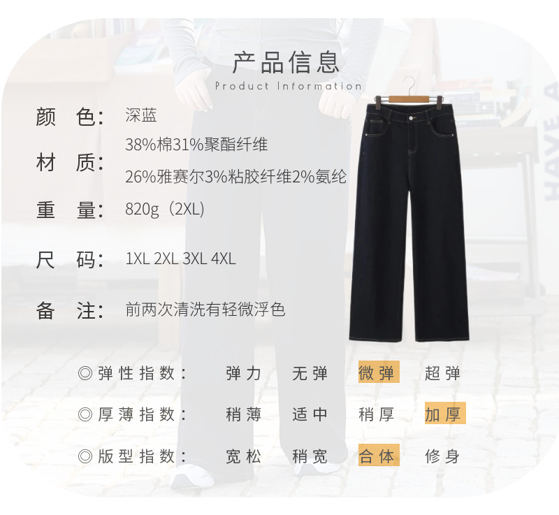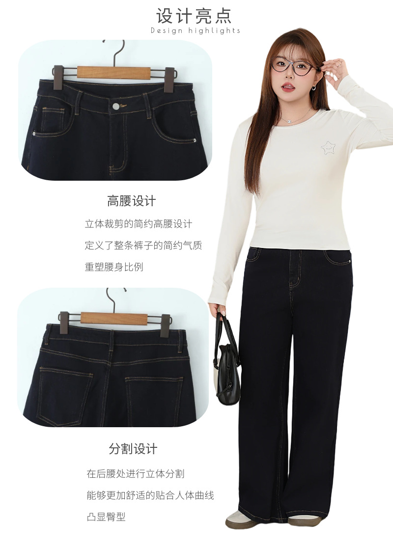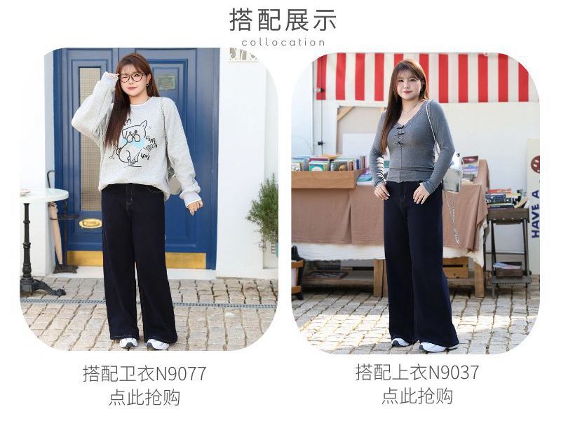 做旧复古胶片感直筒弹力牛仔裤润其9009大码秋冬复古蓝拖地牛仔裤