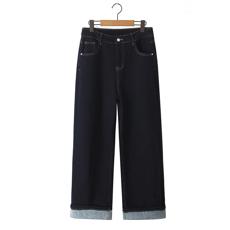 微ラッパ中腰復古水洗いジーンズ潤その8989大サイズのフレンチギャル微ラッパ中腰デニム長ズボン