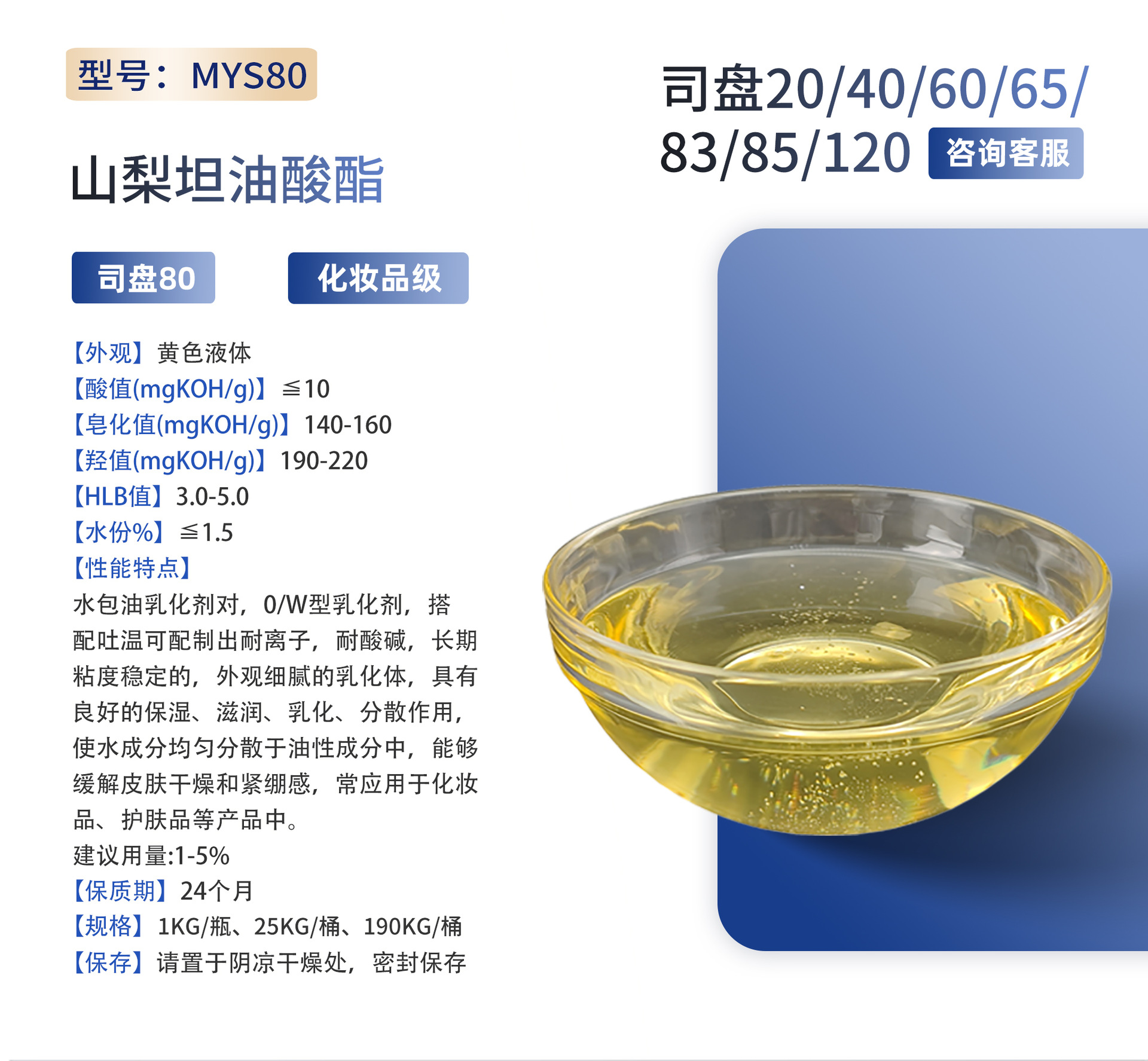 司盤80ソルビタン油酸エステル化粧品級20/28/40/60/65/83/85/120乳化剤