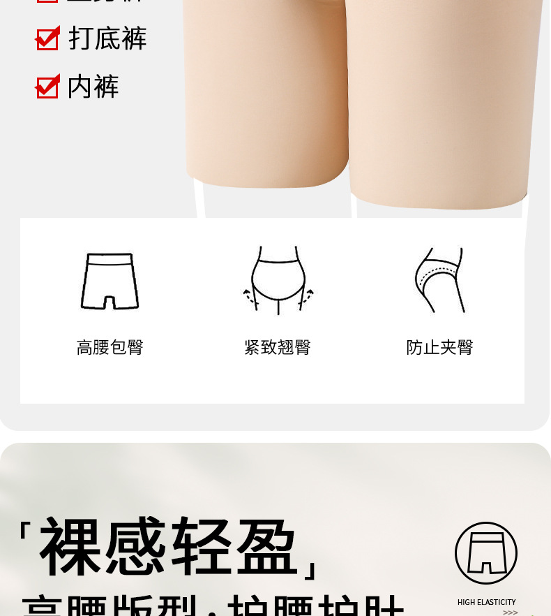 シームレス美脚スクエアパンツ、ハイウエスト露出防止安全パンツ、女性用スカート下着、裾が反りにくい下着