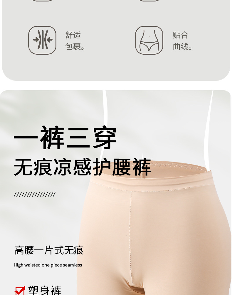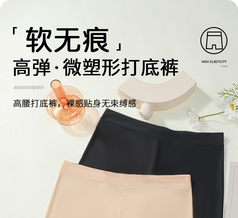高腰無痕冷感女子パンツ裸感純色平角安全ズボン防走光防止エッジ四角レギンス