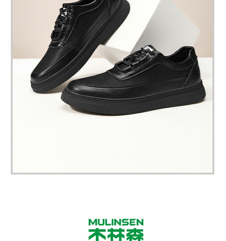 木林森真皮板靴男性タイプの夏の通気運動の流行黒色の薄い英倫風レジャー靴男性