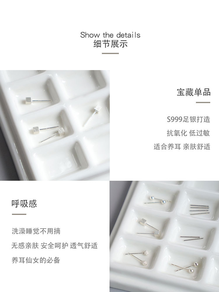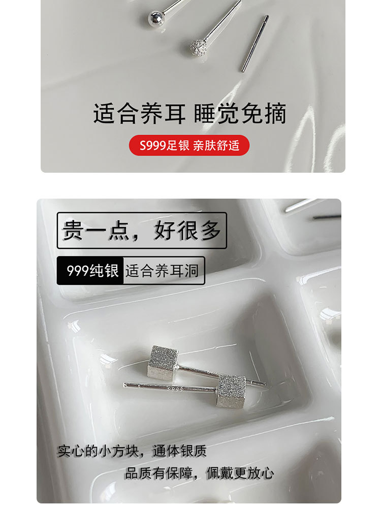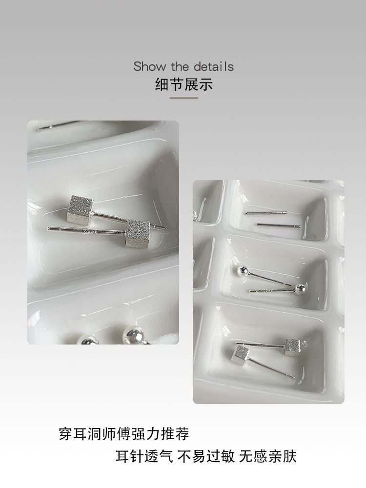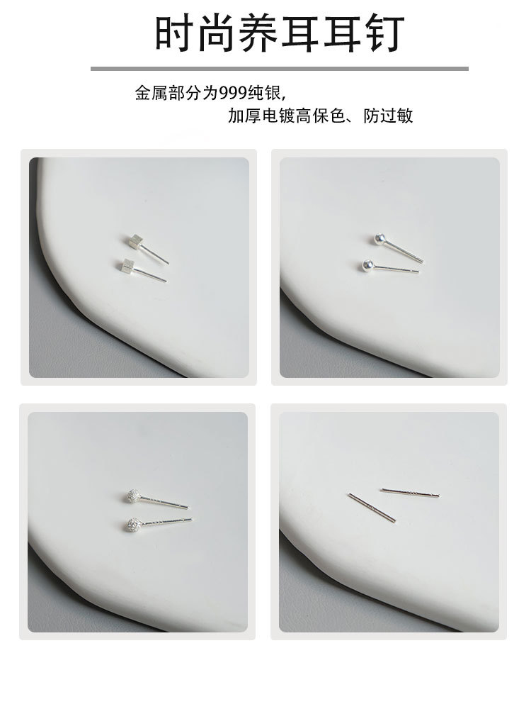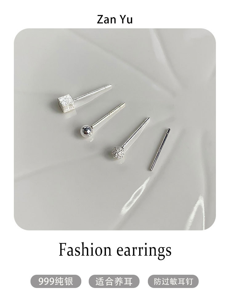 S999 シルバー スクエア スタッド ピアス (3mm),S999 シルバー フロスト ボール スタッド ピアス (3mm),S999 シルバー ボール スタッド ピアス (3mm),S999 シルバー イヤリング (長さ 11mm)