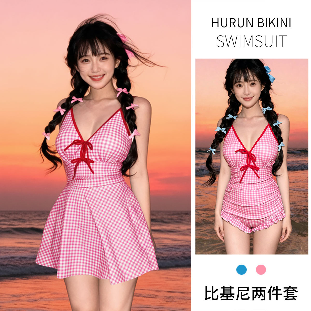 青い水着,ピンクの水着,青い水着+赤いスカート,ピンクの水着+赤いスカート,セパレートレッドドレス