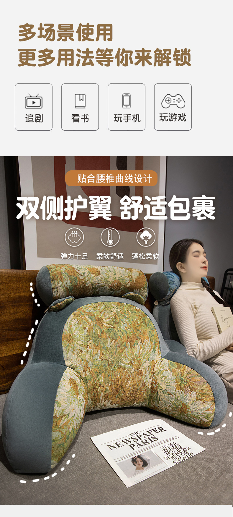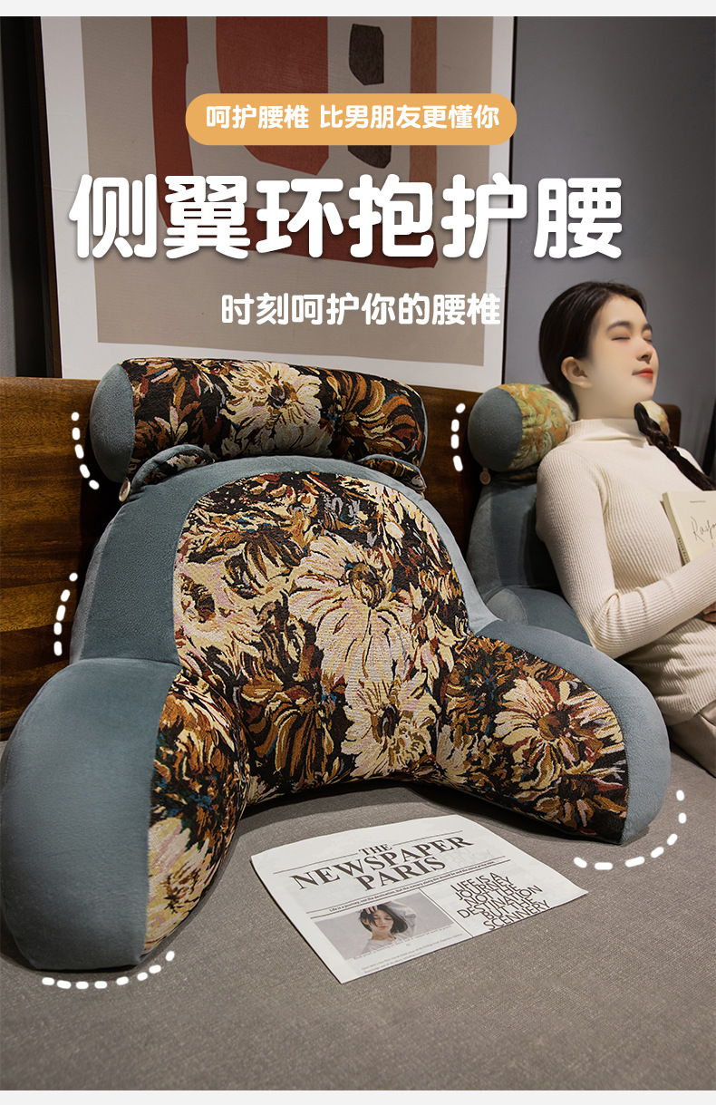 ベッドサイドクッション、ソフトパック腰枕、大型背もたれ、ソファ枕、ベッド枕、妊婦用、寮生用、冬用