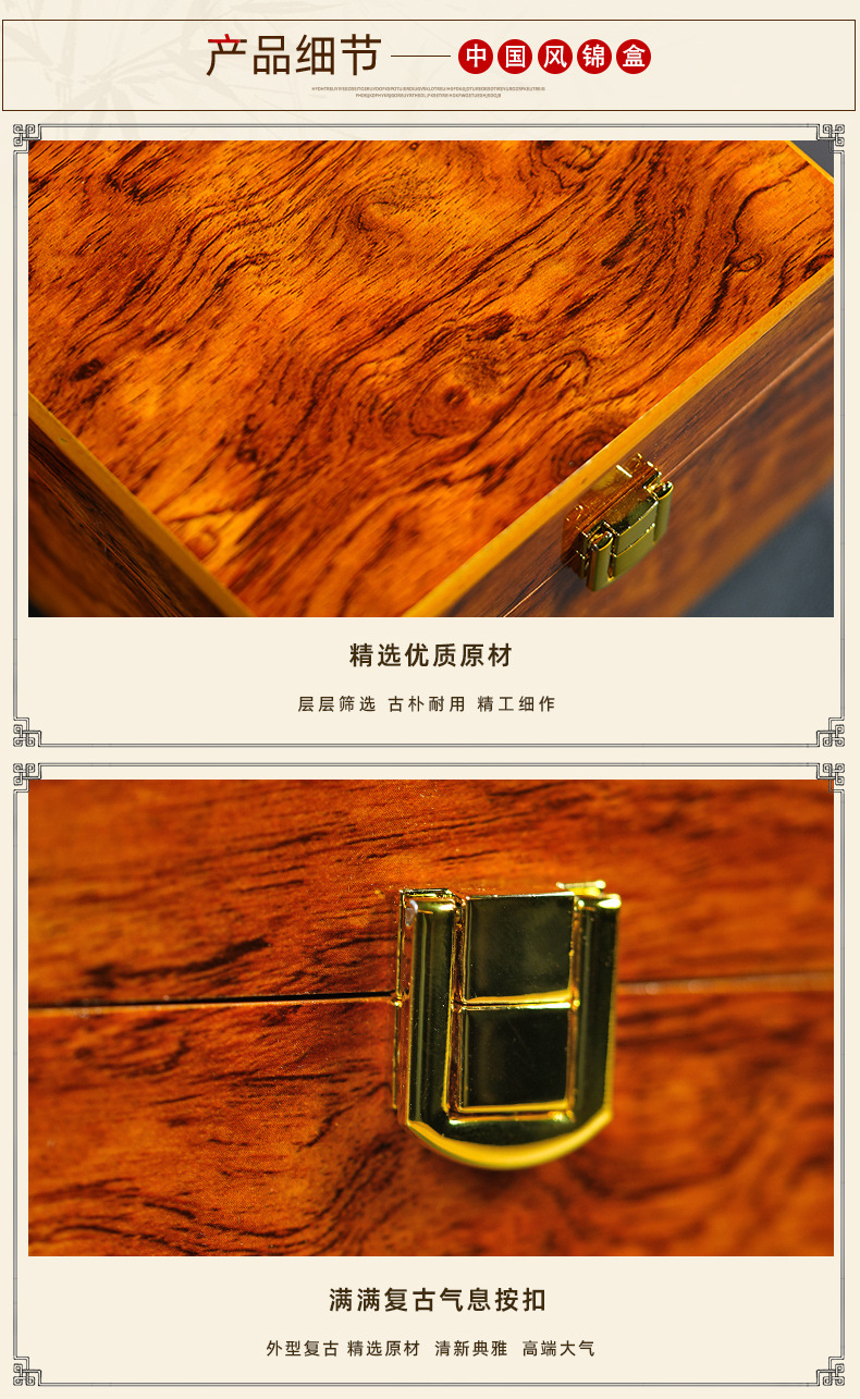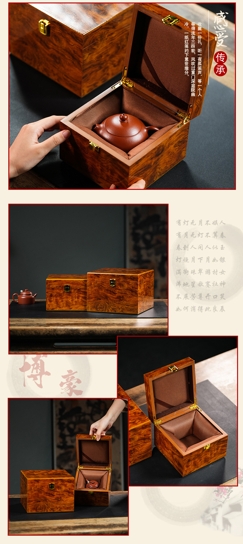 金絲楠木光沢仕上げ高級無垢材包装箱、レトロな留め金付き紫砂壺茶器、紫砂建盏ギフトボックス(空箱)