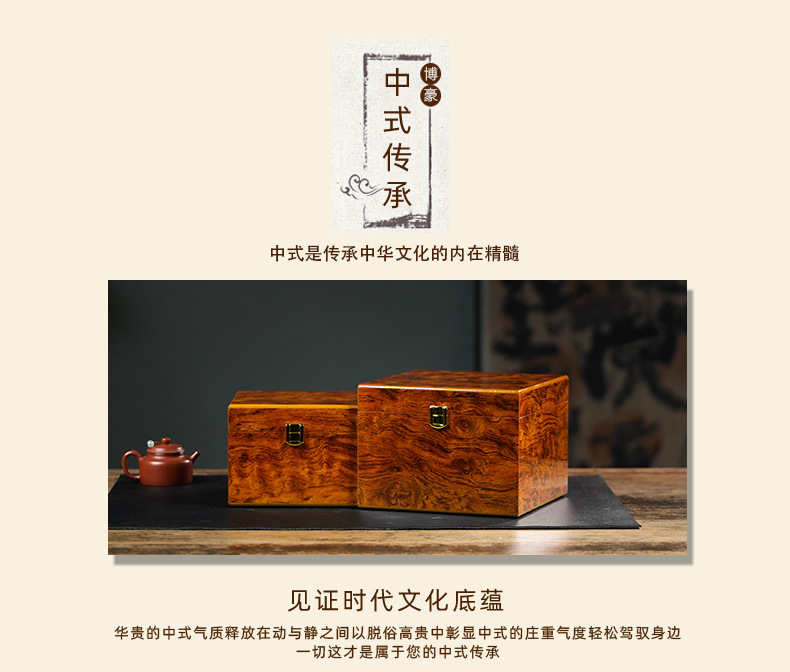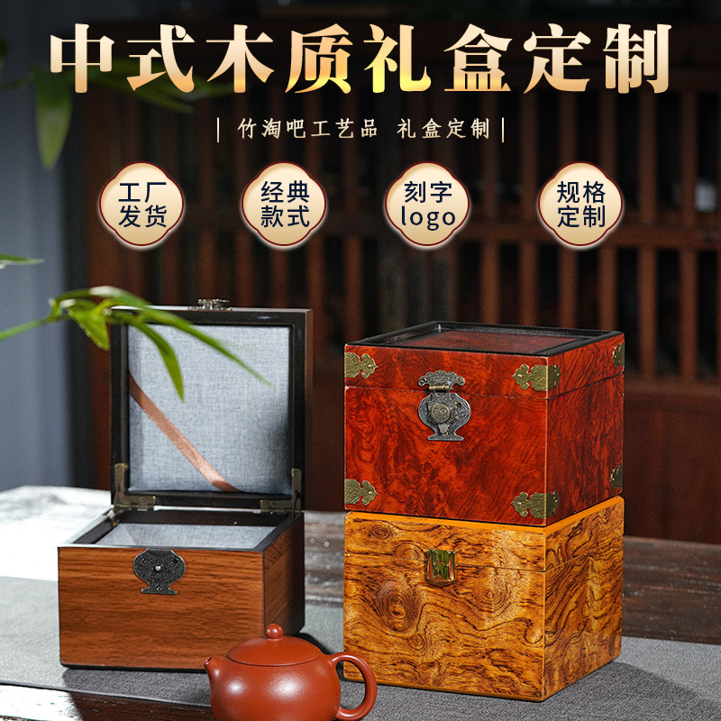 木製のギフトボックスレトロな木の古風な文はアクセサリーの箱の紫砂壺の茶器を遊んで贈り物の包装箱を建てます。