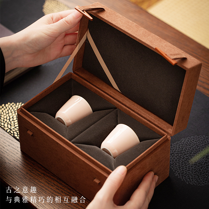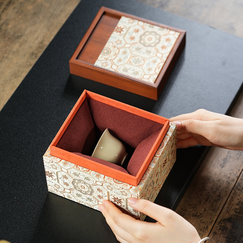 雪花绒布錦箱 国風紫砂壺建盞杯磁器ギフトボックス 香炉主杯木製留め具付き包装箱