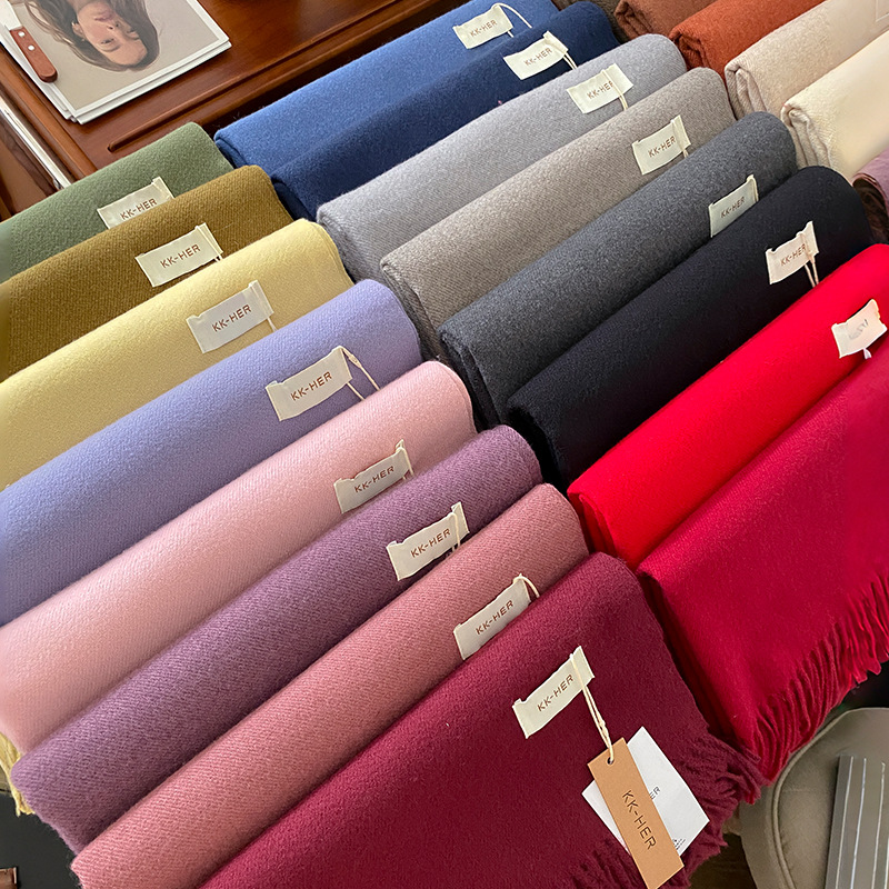秋冬新款baby绒纯色流苏围巾仿羊绒手感韩版加厚保暖百搭软糯披肩