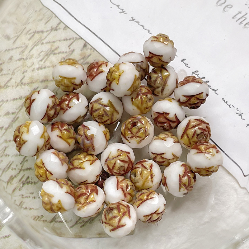 レトロ描金チェコ瑠璃かぼちゃビーズ散珠diy手作りブレスレットネックレスビーズアクセサリー材料
