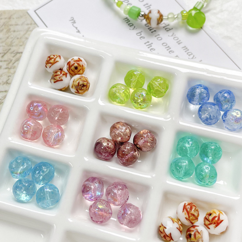 10mm瑠璃玉砕感ボール爆花双色ビーズdiy手作りブレスレットネックレスビーズ部品材料