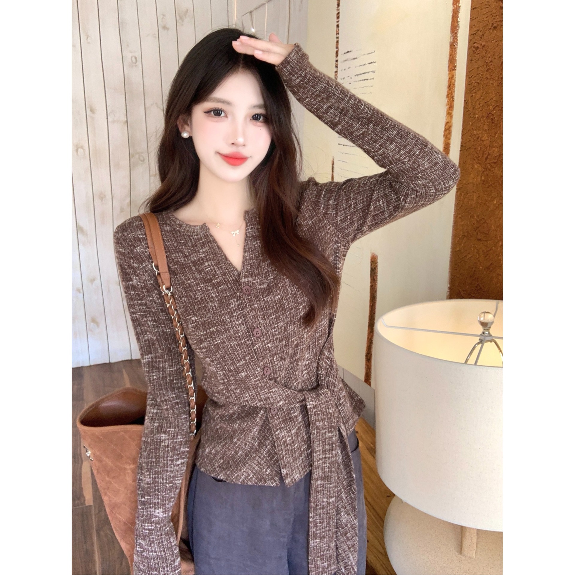 2024新型蝶結びレースvネック長袖日焼け止め秋の修身はやせています。