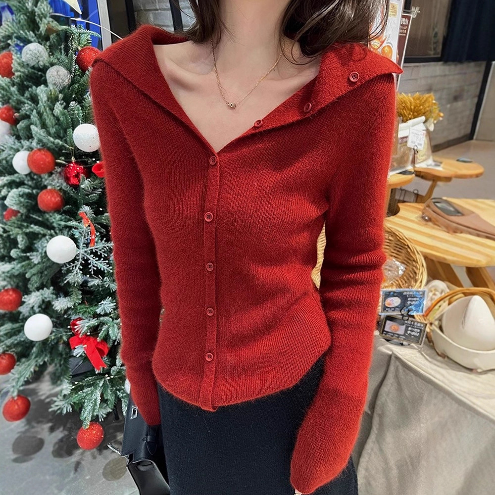 2024年新作秋冬ギャルセクシーvネック長袖ニットtシャツデザイン感スリム着痩せ上着レディース