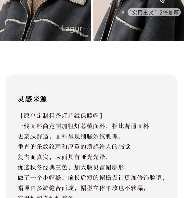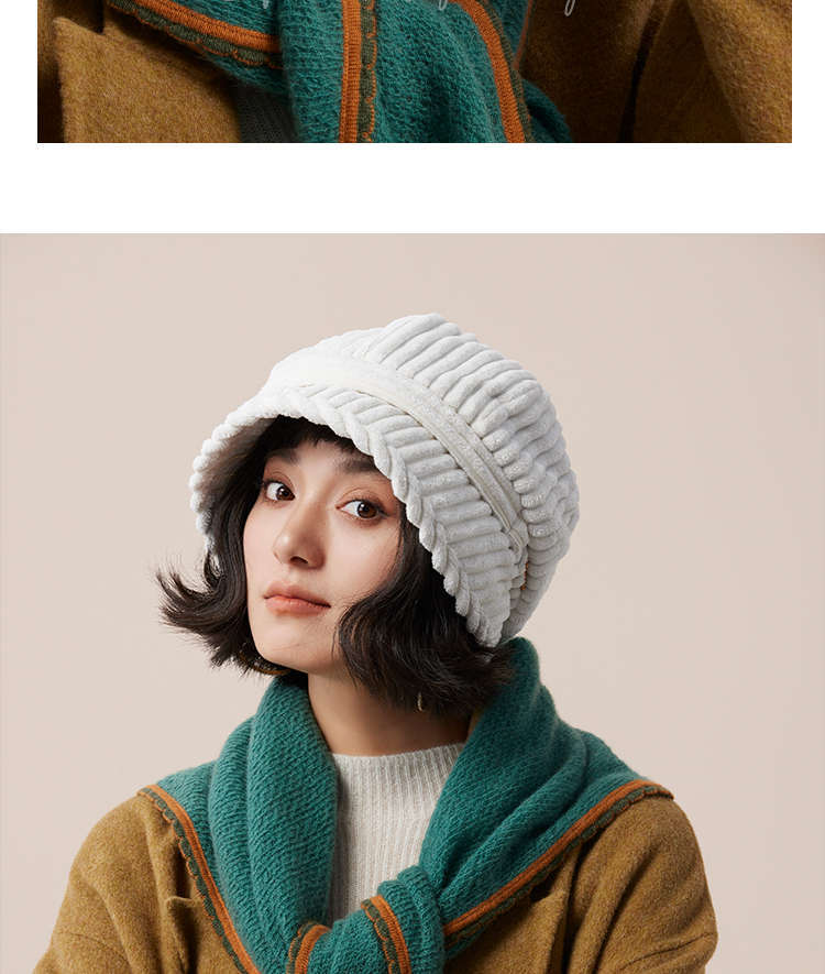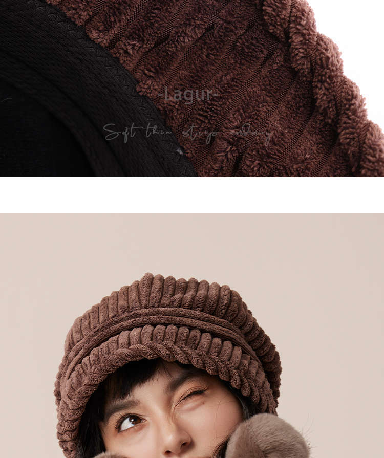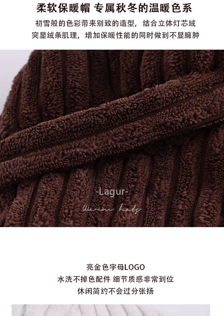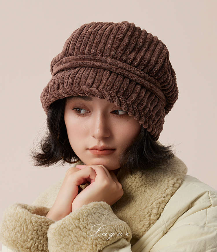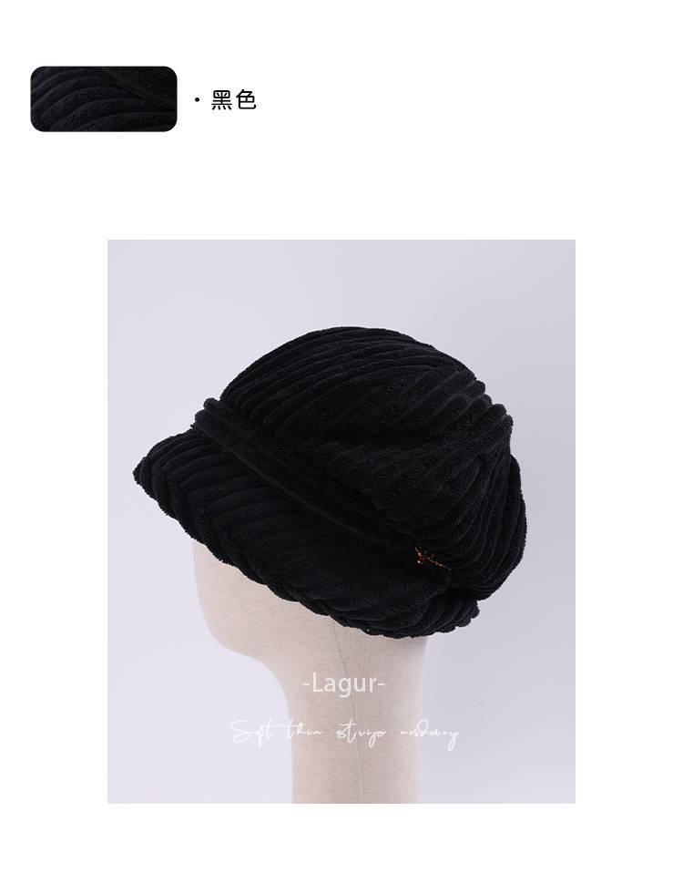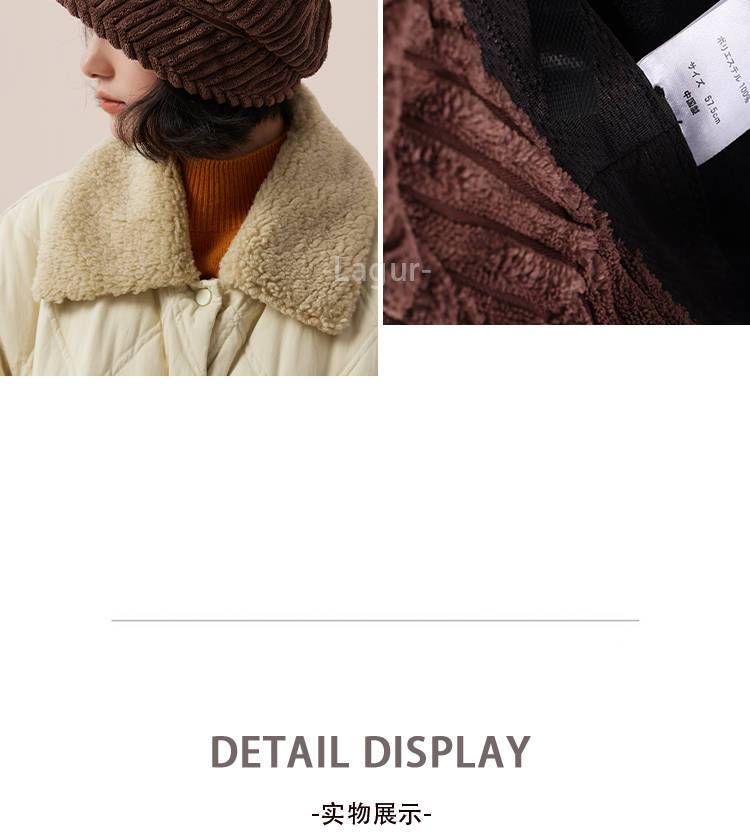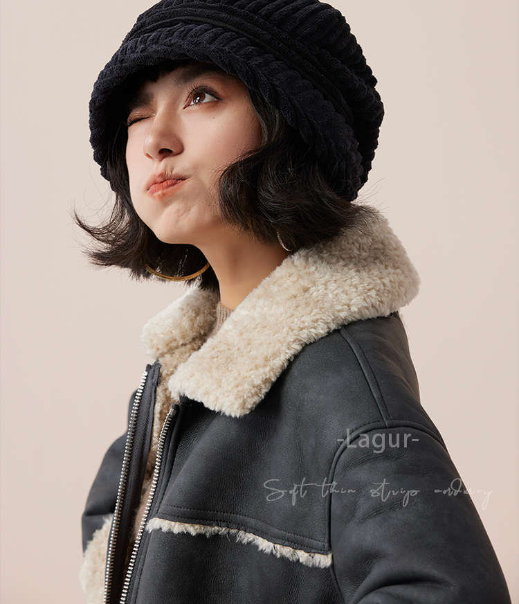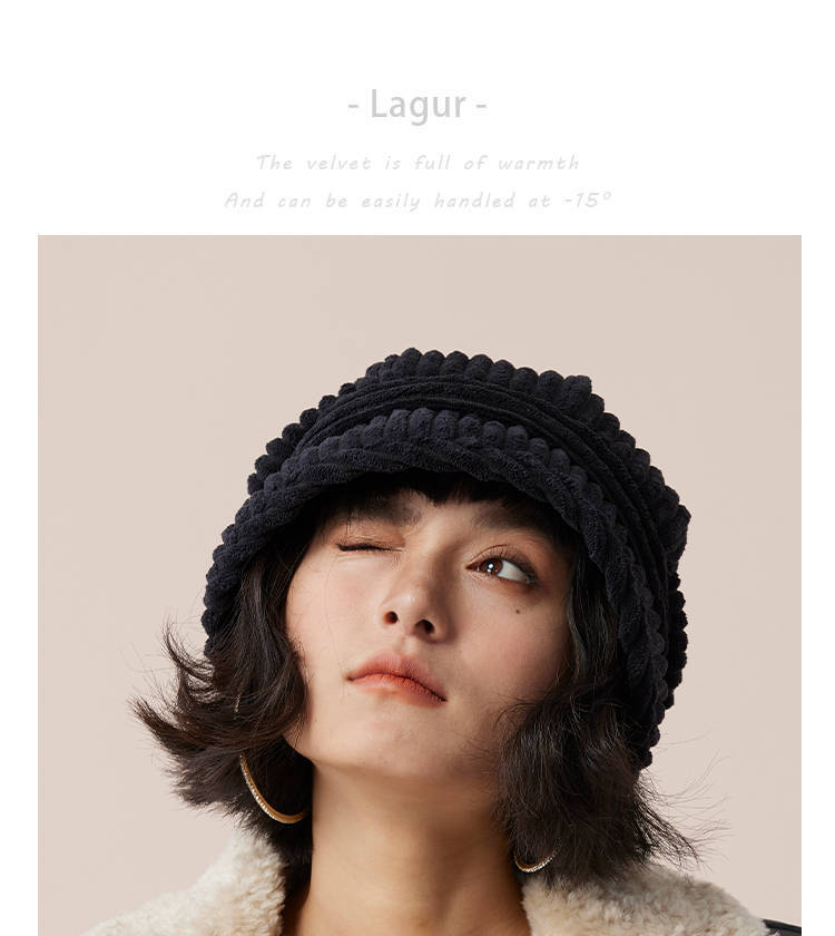 【ノルウェー初雪】レトロな太い条のコーデュロイとベルベットの保温ベレー帽が顔の小さな帽子を見せている秋冬の女性