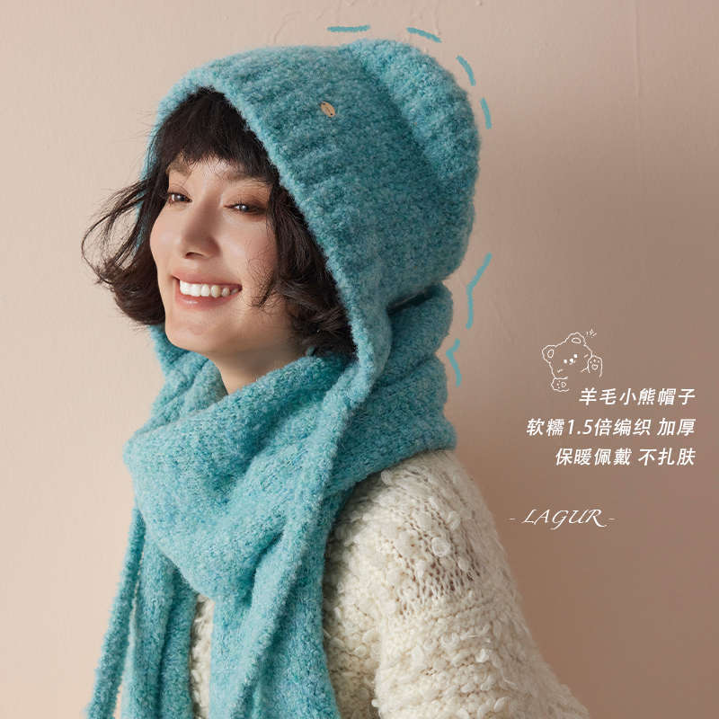 「定染リング糸・純粋な青」ウールベアー帽子ニット毛毛毛毛帽耳包頭帽子冬