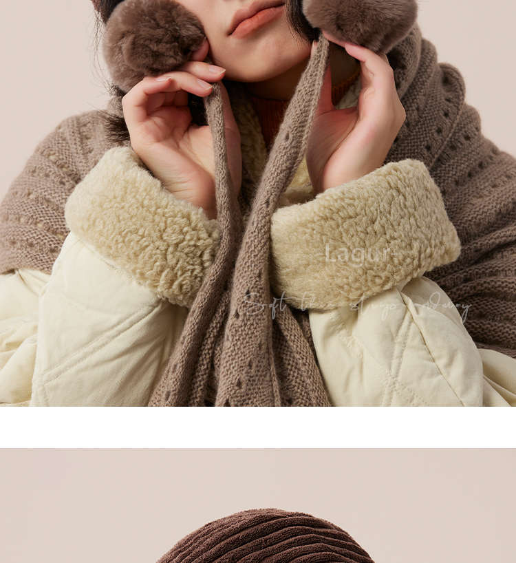 Lagur(经典bi入~)羊毛小檐卷边褶皱优雅渔夫帽加绒香风帽子女冬