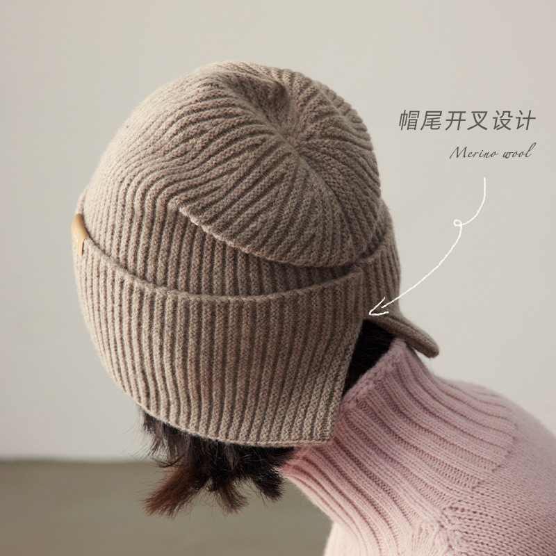 少し緩み1oo % メリヤス厚手ニット帽ウールウールウールウールキャップコールドキャップビッグヘッドキャップ耳当てレディース冬