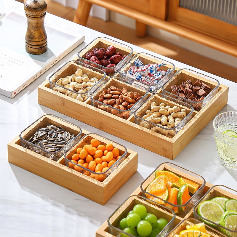ガラスフルーツプレート、ホームリビングルームコーヒーテーブル、ナッツ、ドライフルーツスナックディスプレイプレート、分割フルーツプレート、アフタヌーンティースナックプレート