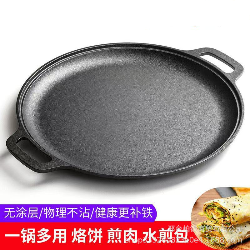 両耳水フライパン家庭用鋳鉄フライパンフライパン厚い餃子コーティングされていないピザ焼き皿烙餅鍋