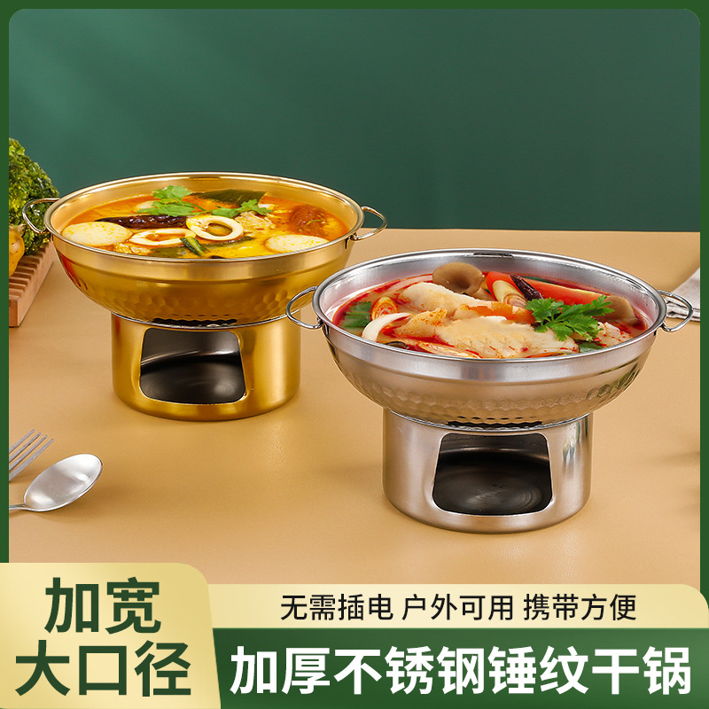 ステンレスの金色のタイ式の冬の陰の功の鍋の大きい屋台の商用家庭用の牛の鍋の固体のアルコールのストーブの鍋の乾燥した鍋