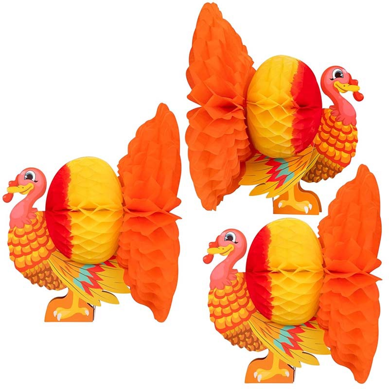 感恩节派对秋季主题火鸡蜂窝球餐桌中心气氛布置挂饰土耳其装饰