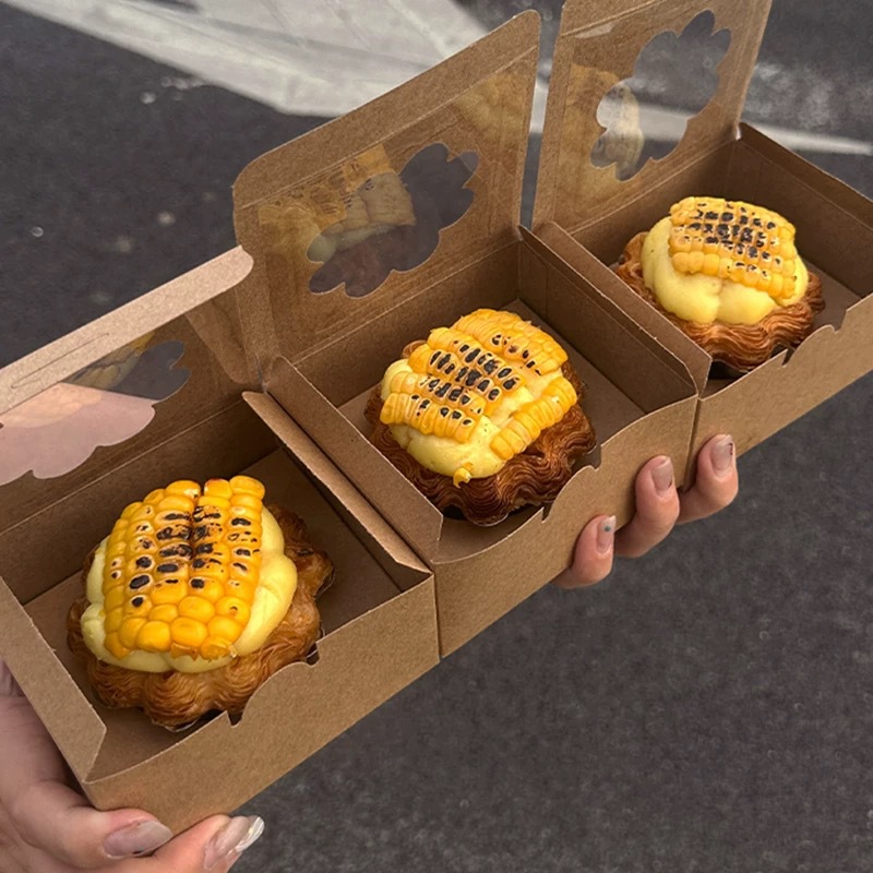 网红太阳花蛋挞打包盒烘焙焦糖可颂挞酥玉米挞加厚商用单个包装盒
