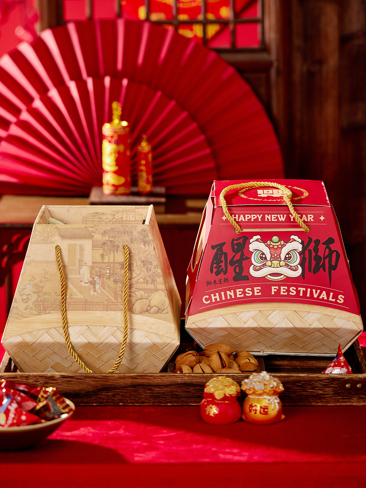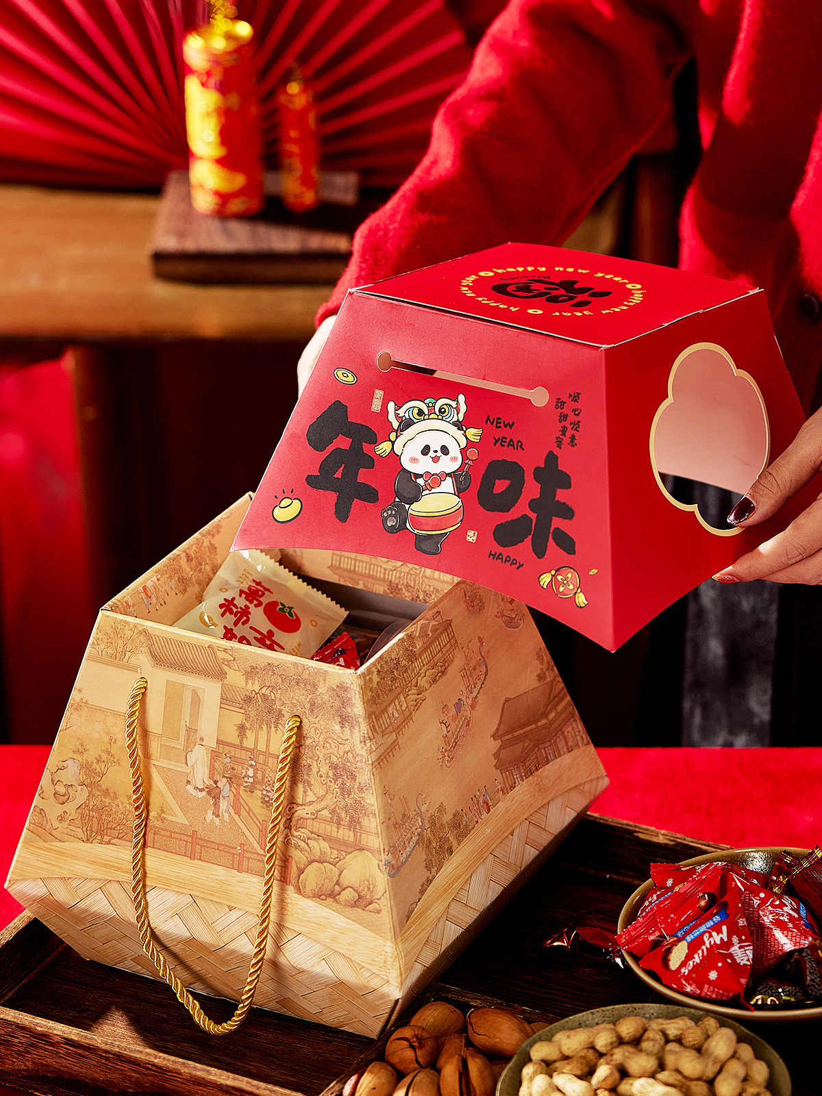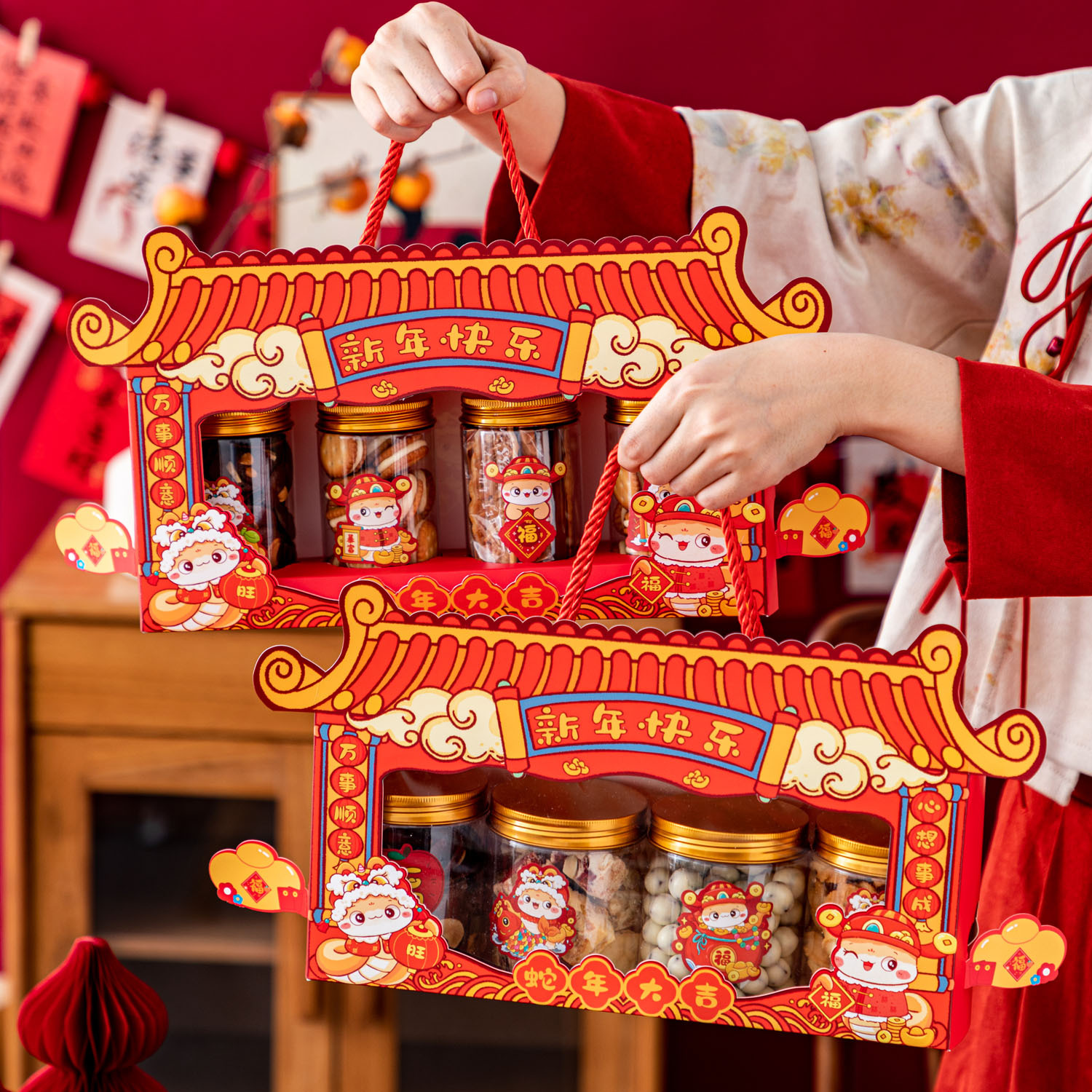 蛇年高級国風ギフトボックスビスケットナッツ干物特産物抱っこ桶空箱間食餅新年包装箱