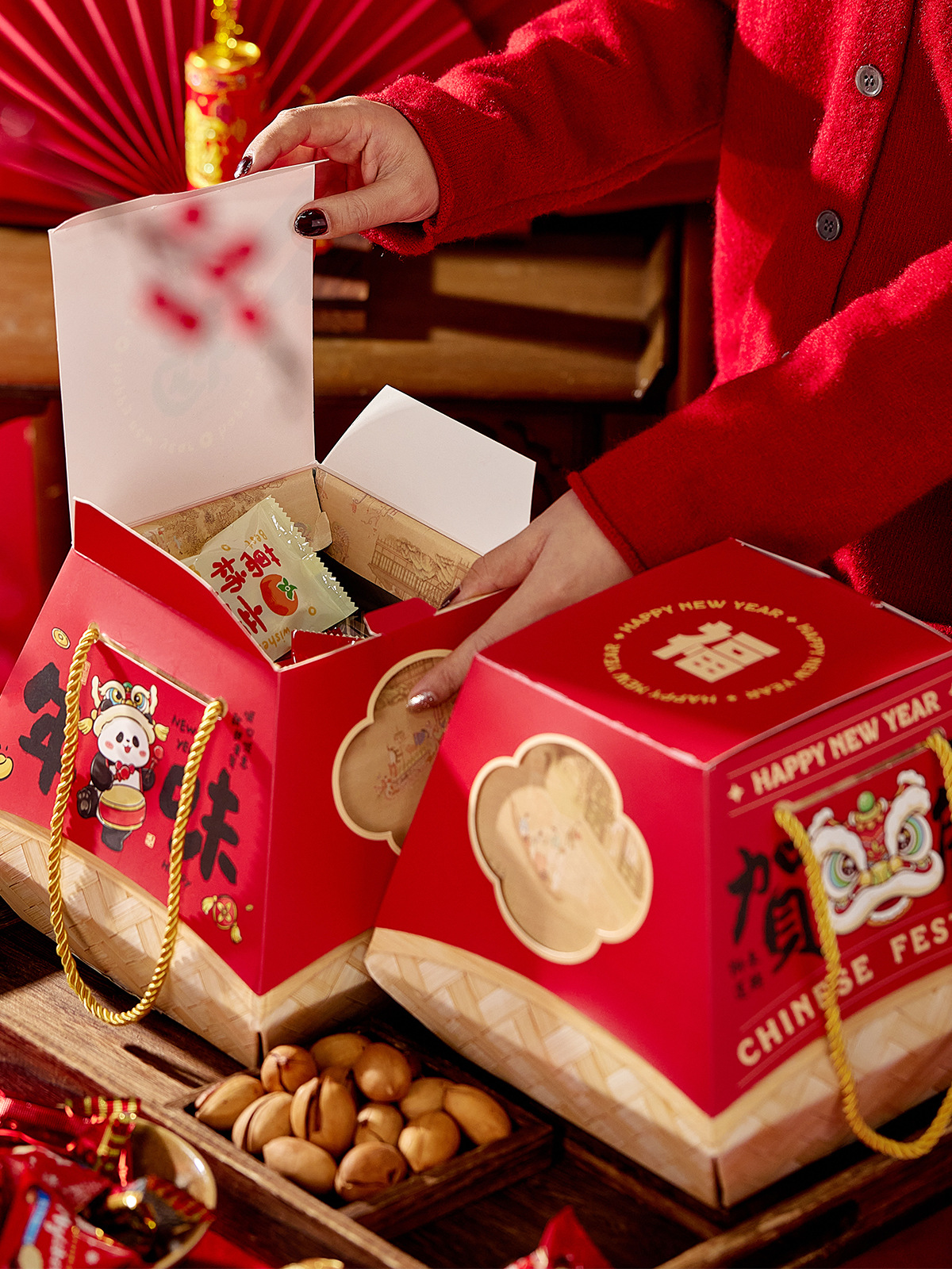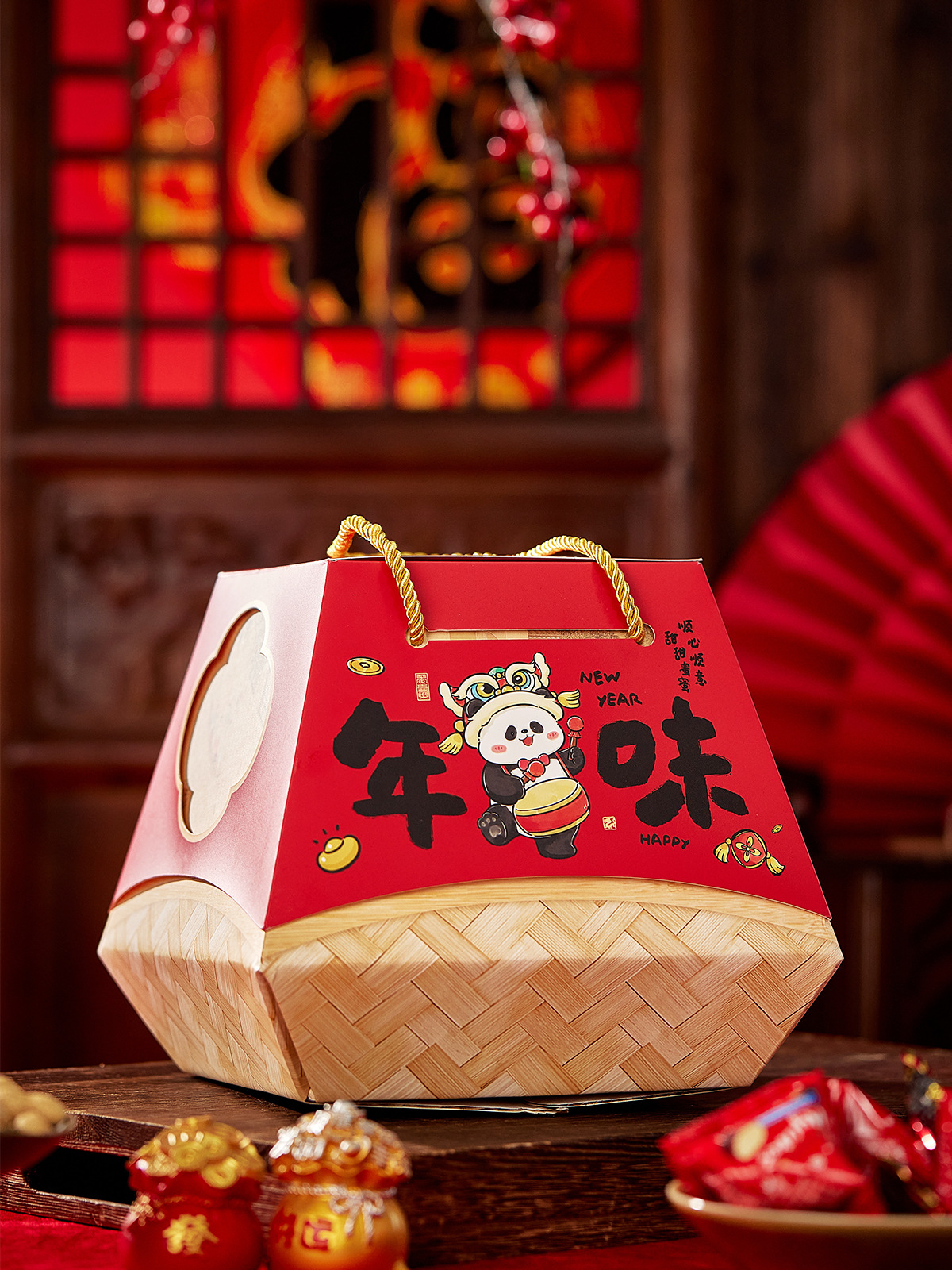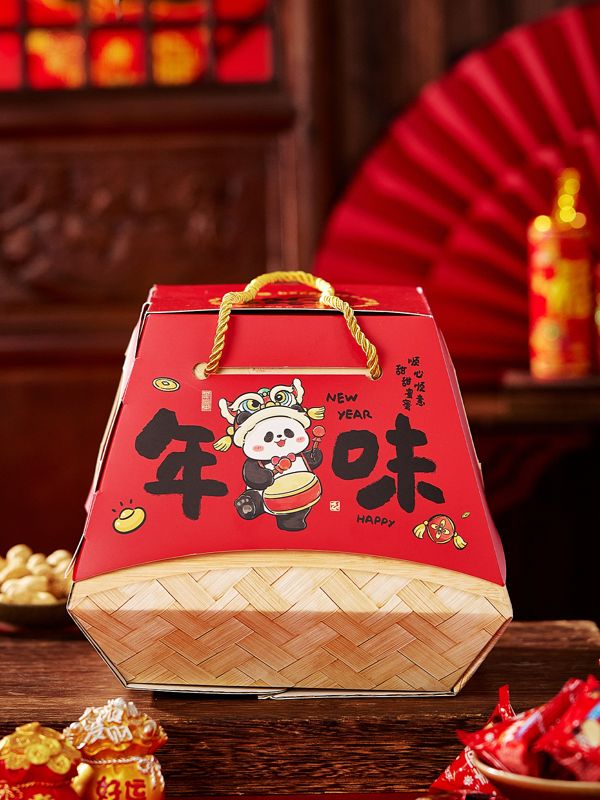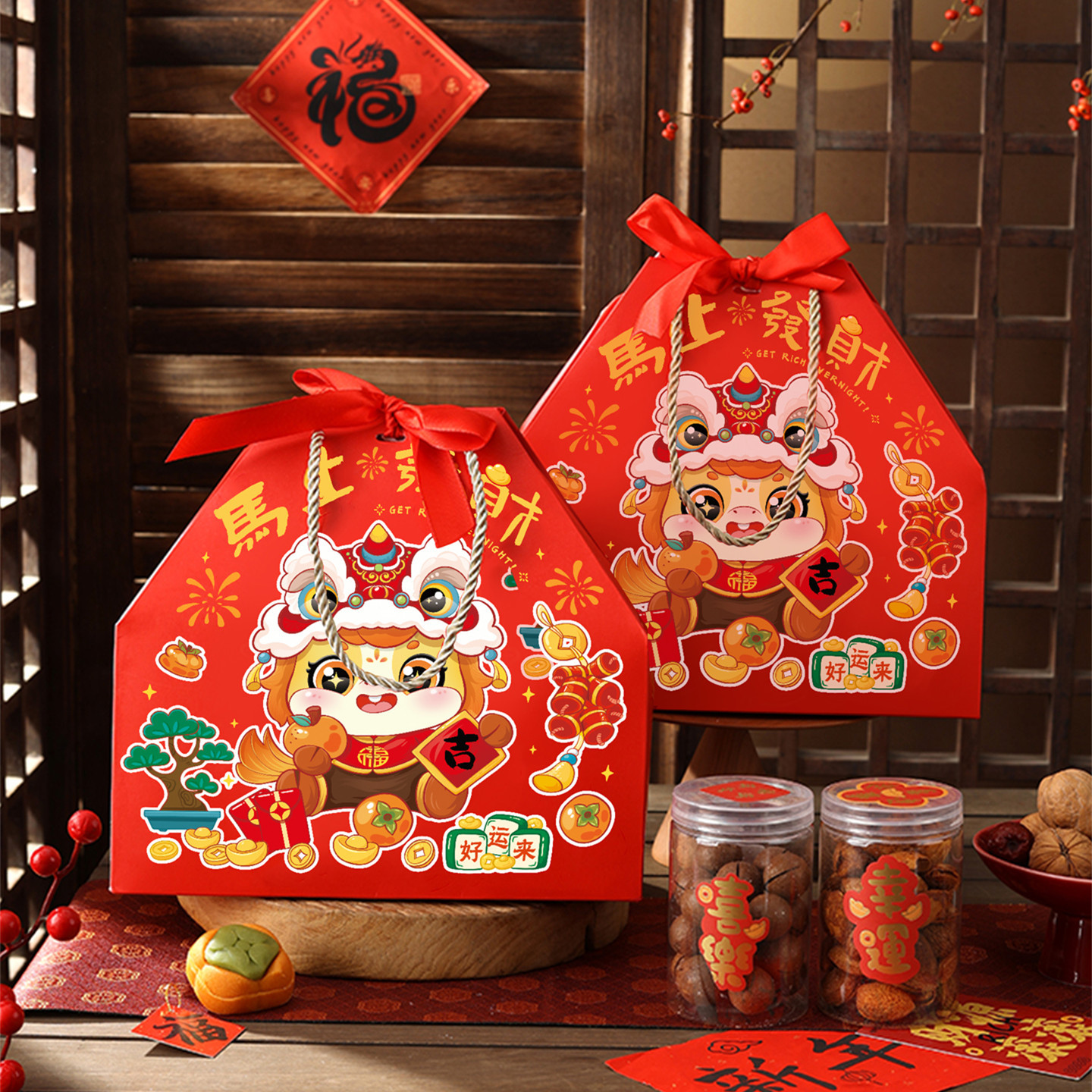 2026新年春节包装盒烘焙过年糖果手提马年年货抱抱桶礼品盒空盒子