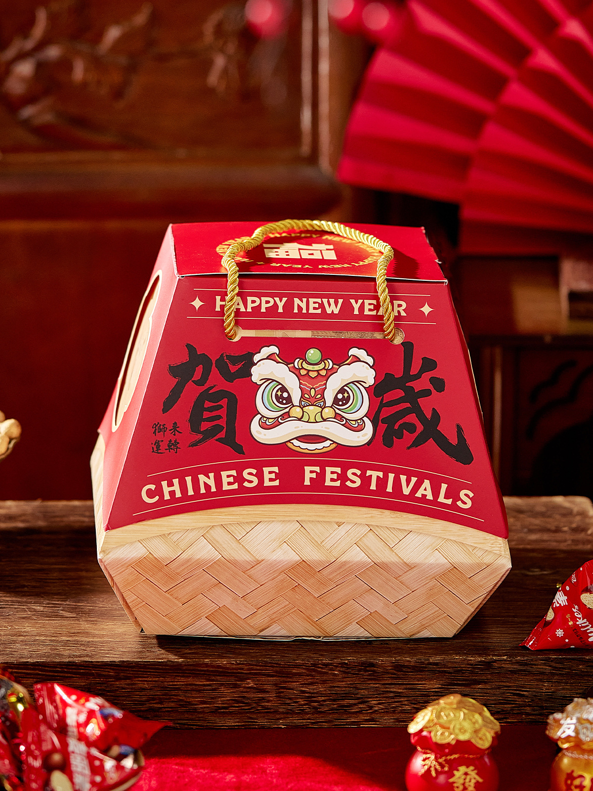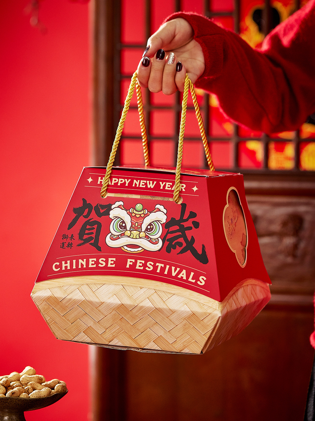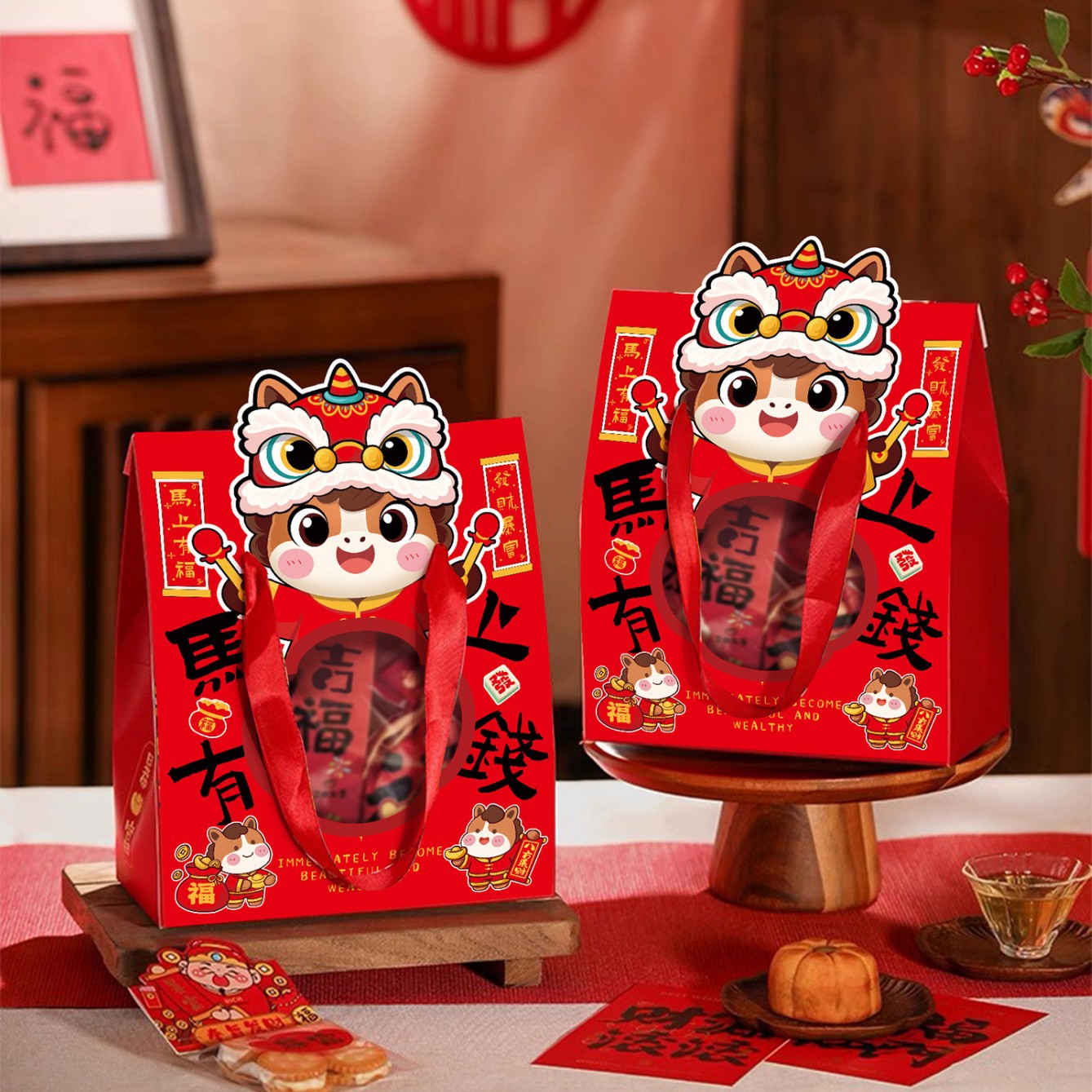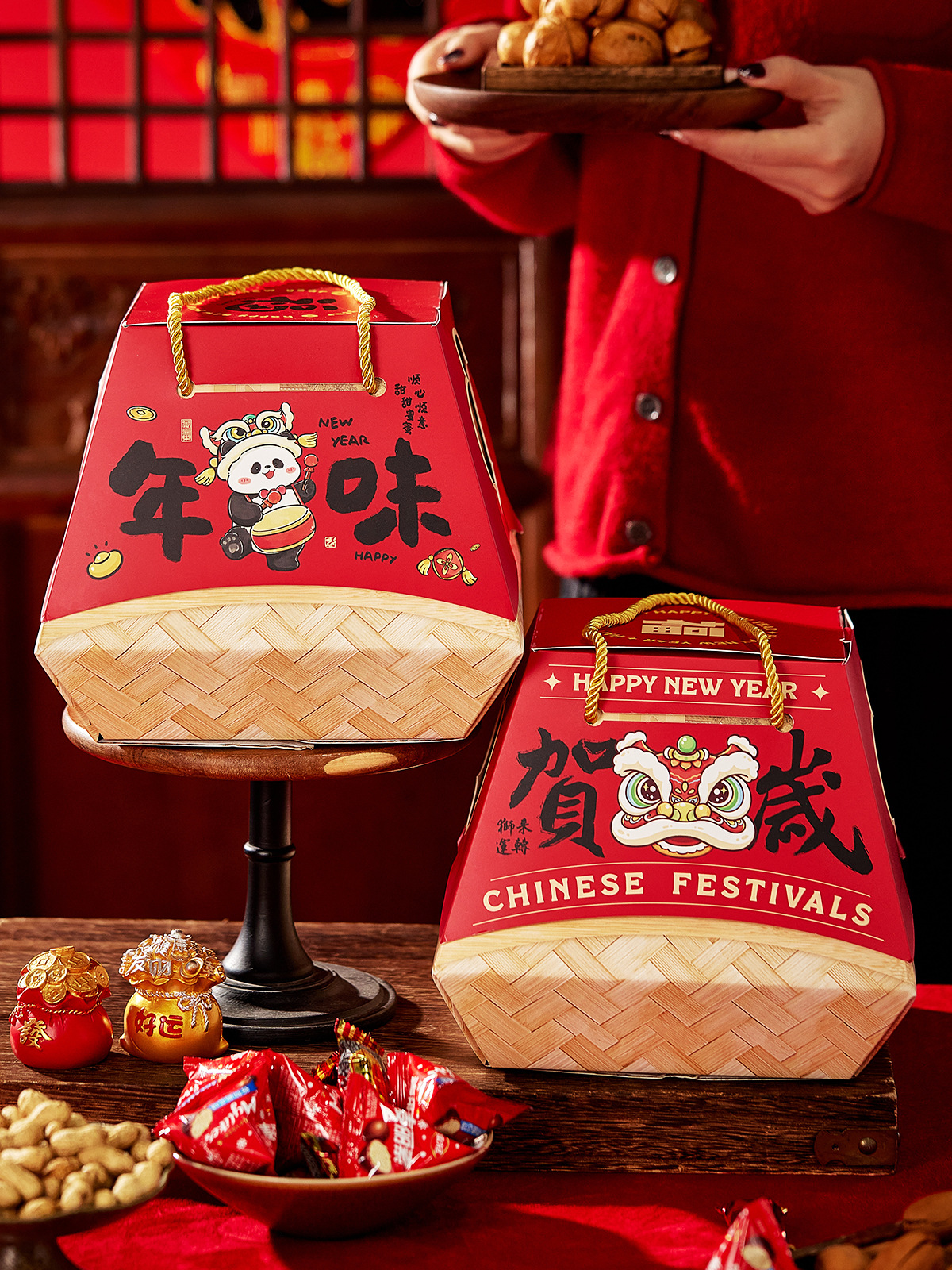 2026新年春节包装盒烘焙过年糖果手提马年年货抱抱桶礼品盒空盒子