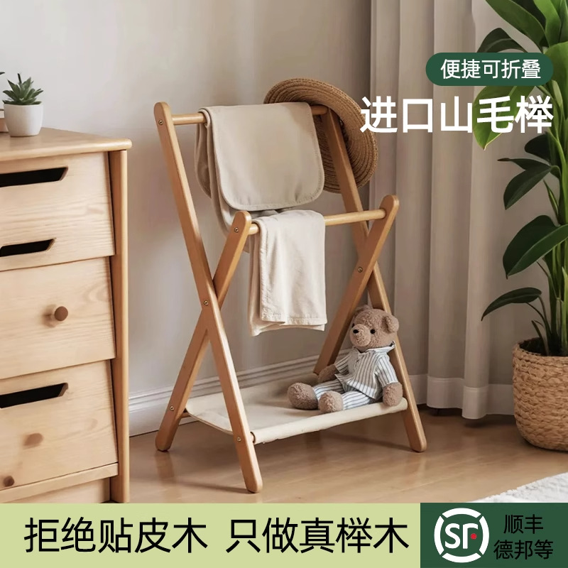 榉木落地挂衣架家用挂衣置物架实木衣帽架移动衣架次净衣挂衣架