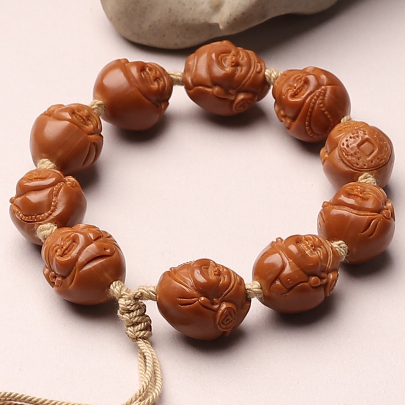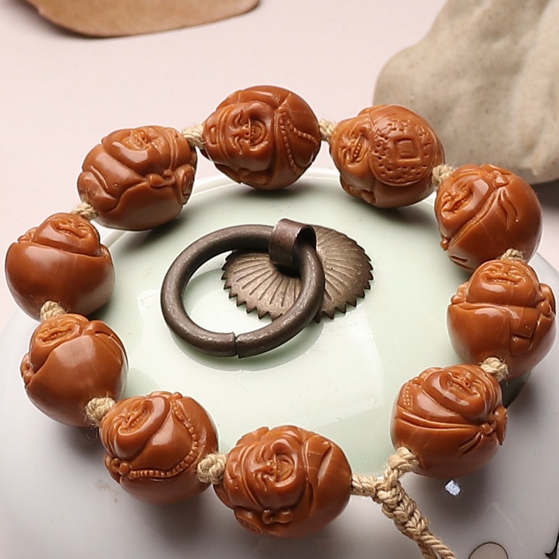 鉄核小粒短円形いたずらで幸せな弥勒彫刻ブレスレットブレスレットギフトオリーブ核男性用