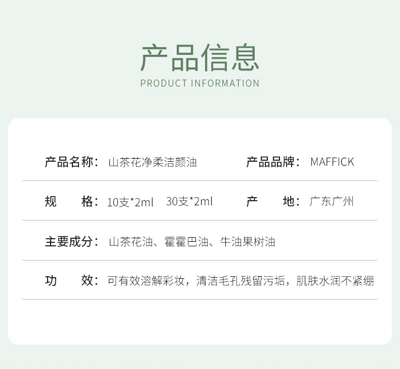 マフィック クレンジングオイル カメリア セカンドタイム メイク落としオイル ウォータリークレンジング 女性用 ポータブルパック 卸売 独立小袋